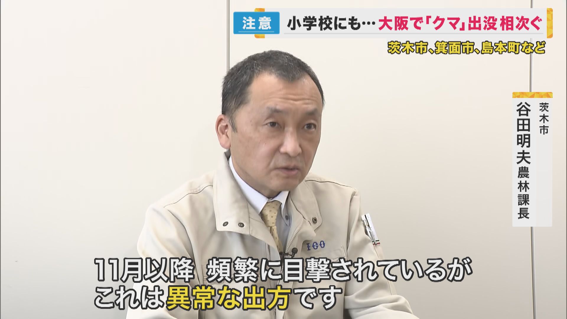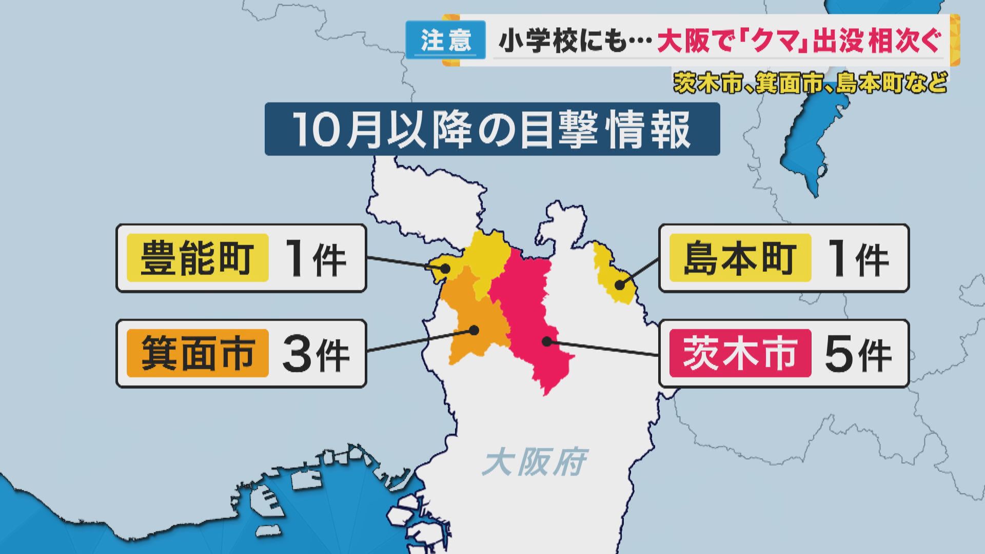 大阪府茨木市では、11月に入って小学校のグラウンドなどでクマの出没情報が相次ぎ、市は注意を呼びかけています。