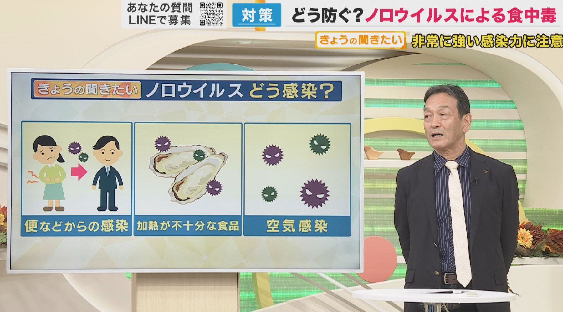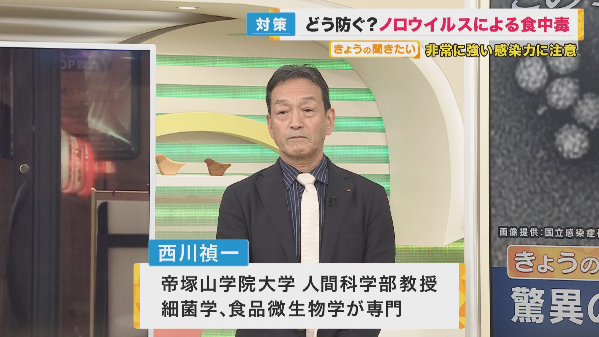 11月に入り、焼き肉店や高齢者施設など、全国で食中毒が相次いでいます。実は食中毒は夏だけでなく、冬にも発生するリスクがあり、中でも感染力が非常に強い「ノロウイルス」に注意が必要です。これから感染者が増加する季節となるノロウイルス。感染力は脅威的で、意外な感染経路もあるとのことです。細菌学や食品微生物学が専門の、帝塚山学院大学・西川禎一教授に聞きました。