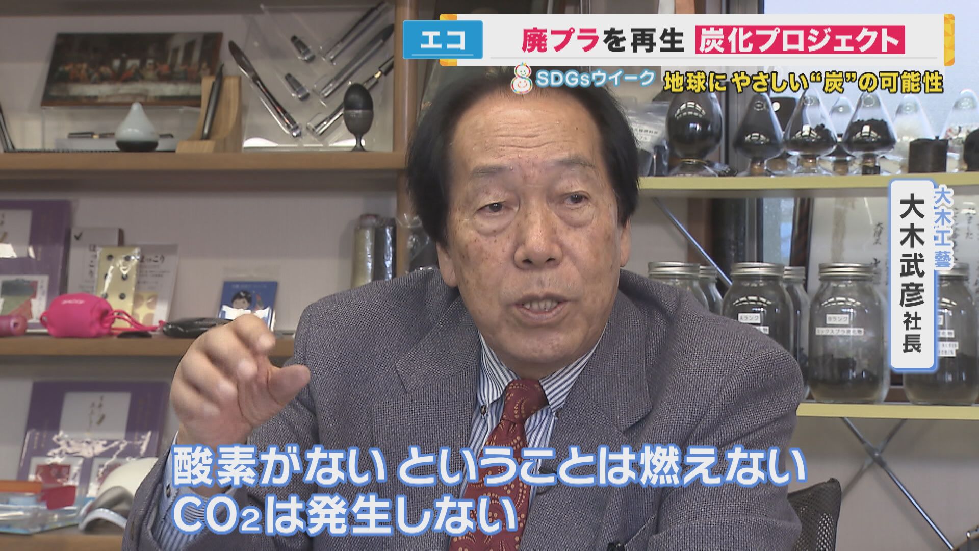 「炭化というのはね、無酸素で蒸し焼きをするわけです。だから酸素がないということは燃えない。ということは、CO2は発生しない。温暖化緩和の1つの要因になります」