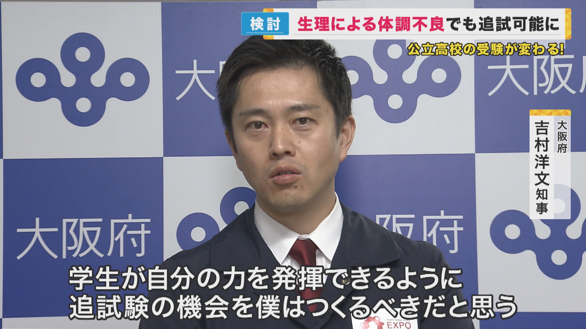 近畿・徳島では、京都、奈良、滋賀、和歌山、徳島が認めています。 一方、大阪と兵庫は、現状、生理を伴う体調不良は、追試の対象と認めておらず、この課題について吉村知事は…