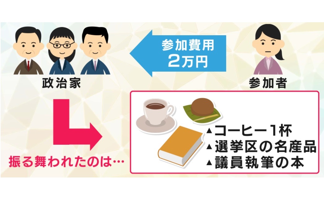 取材した自民党の中堅議員の個人パーティーの内容で、コロナ禍ではありましたが、最も価格と中身に乖離があると記者が感じたケースです。参加費2万円のパーティーで出されたのは、コーヒー1杯、選挙区の名産品、議員が執筆した本でした。 これで2万円でしたら利益率がとても高いとはいえ、結局個人献金ではないかと思われかねないのではないでしょうか。禁止されている政治家個人への献金のようにみられ、政治不信につながるのではないかと気になります。