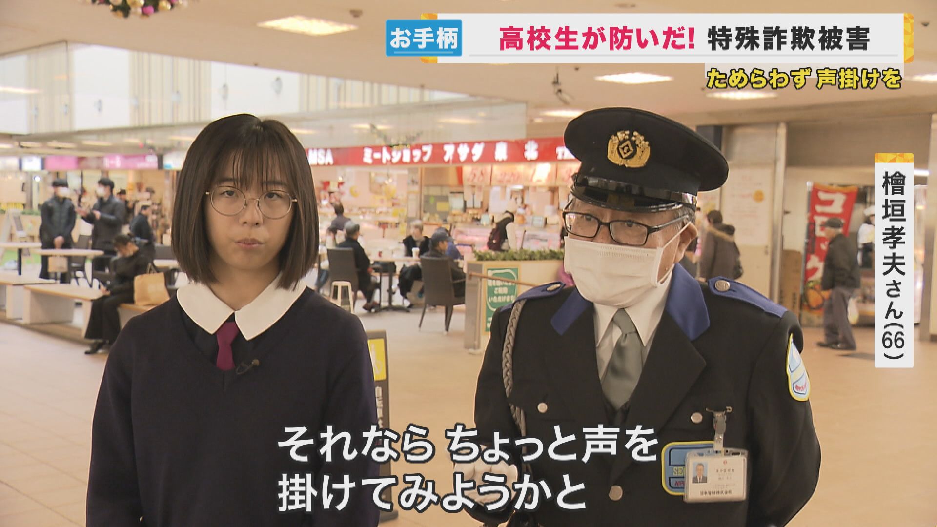 【警備員 桧垣孝夫さん】 「話を聞いた瞬間に、これは今ある詐欺と思いまして、その場で警備に電話入れて、その経由で警察に(通報)連携ですよね」