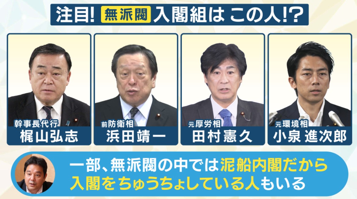 ただ岸田首相が行おうとしている内閣改造については自民党内から、 「無派閥のなかでは泥船内閣だから入閣をちゅうちょしている人もいる」という声もあつということです。