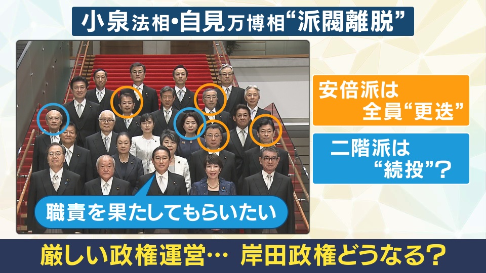 【ジャーナリスト 鈴木哲夫さん】「そもそも岸田内閣は危機管理ができていません。問題があったときに先手を打って、けじめつけて辞めさせるとかできていない。これまでに問題が起きた時の対応を思い出すと全部後手後手です。今回、実は安倍派の閣僚を事実上更迭する時に、同時に二階派や他の派閥もこれから捜査がどうなるか分からないという話が既に出ていたんです。ドミノ式になるから、もう内閣改造とか思い切ったことを決断するしかないって話が出ていました。
