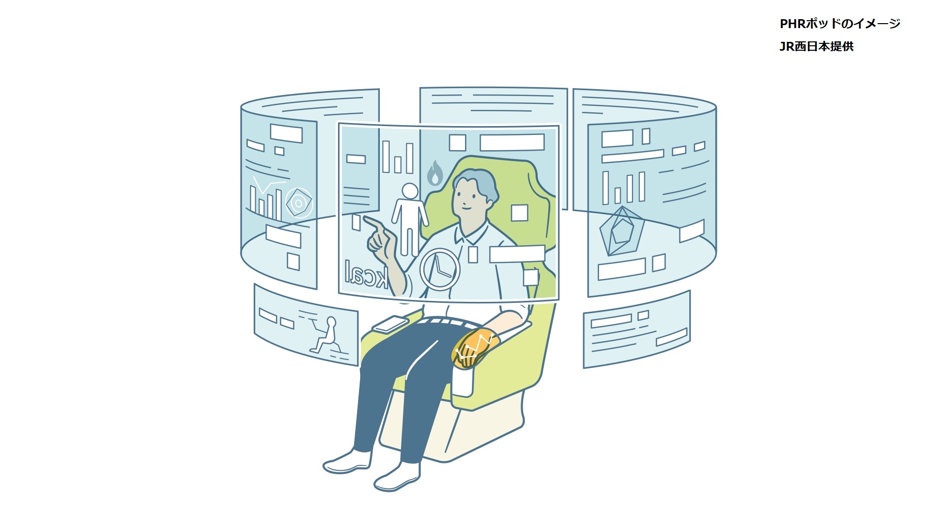 その代わりに、座ることで健康データなどを取得できる設置型のカプセル「PHRポッド」が設置される予定で、JR西日本が設計と製造を担当します。 現在、1人1人の健康データに合わせた食事や運動プログラムの提案ができるよう、準備を進めています。