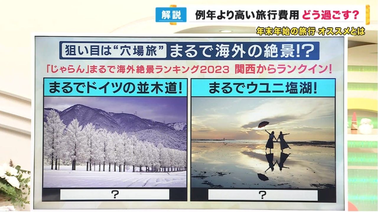 さらに、こんな旅もオススメだそうです。 まるで海外の絶景!?ということで、「じゃらん」の「まるで海外絶景ランキング2023」に関西からもランクインしています。