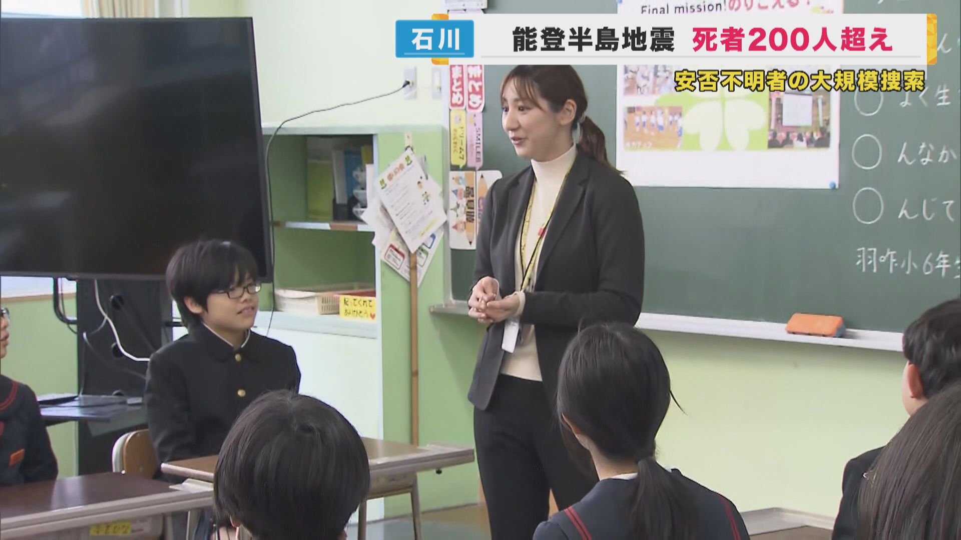 一方、羽咋市の小学校では冬休みが終わり、新学期が始まりました。 学校からの指示で多くの保護者が車で子どもを送り届けていて、避難所から登校する児童もいました。