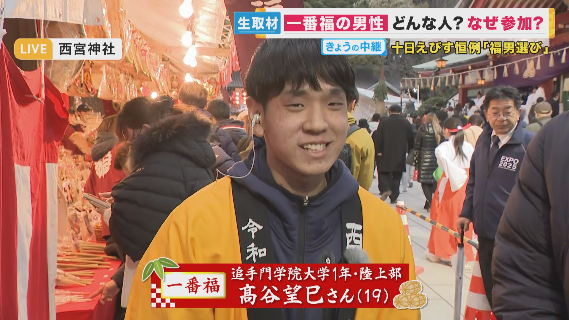 「福男」は陸上部の大学生 一番の願いは「地震に遭われた方に元気を」 みんなに福を分けたいと笑顔で語る