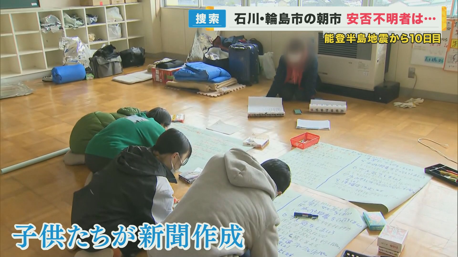 珠洲市の避難所では子供たちが、集団生活に必要な情報をまとめた新聞を作成しています。うがいや定期的な換気などの感染症対策や、ストレッチをして身体を動かすことなどを呼びかけています。
