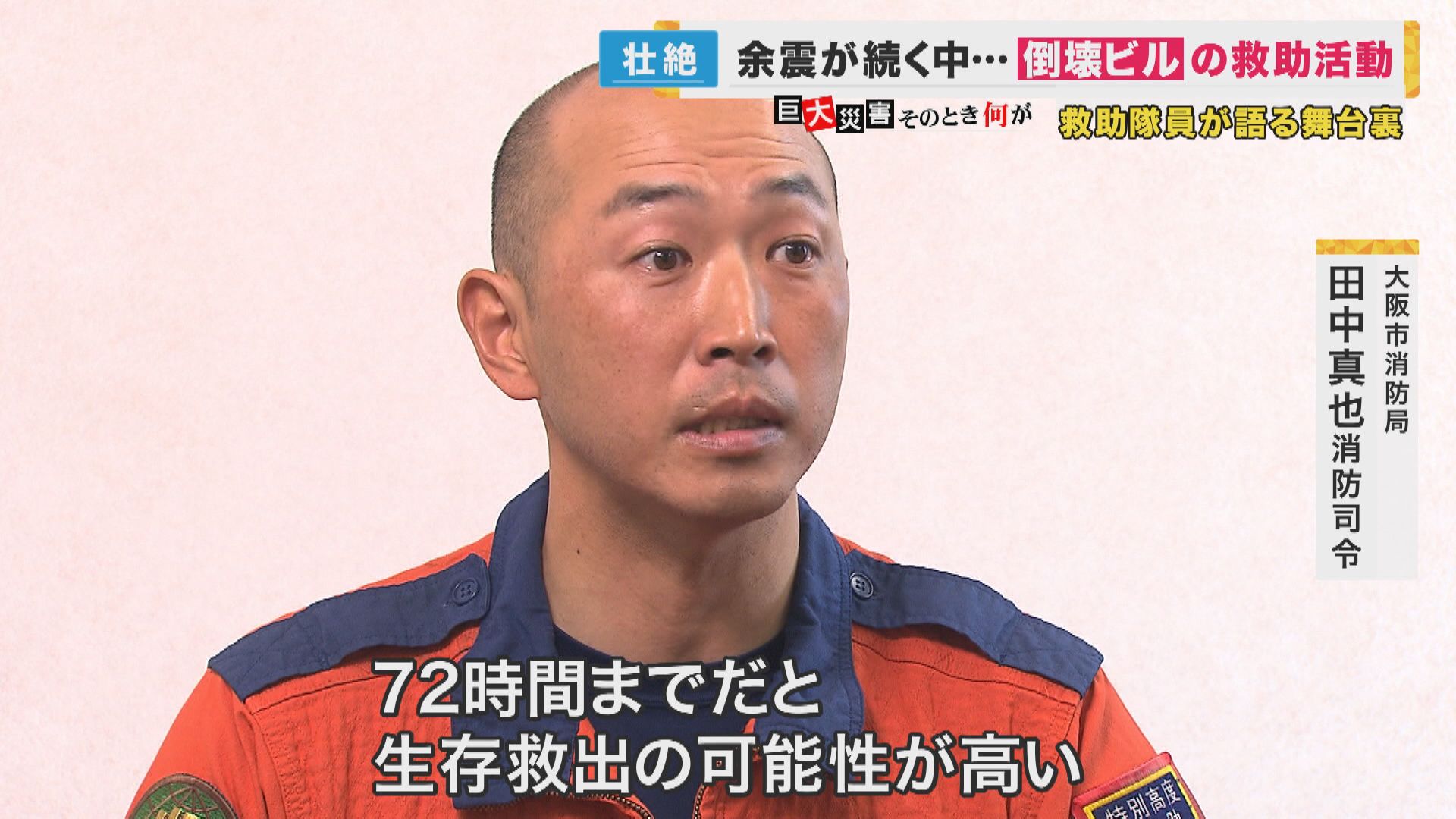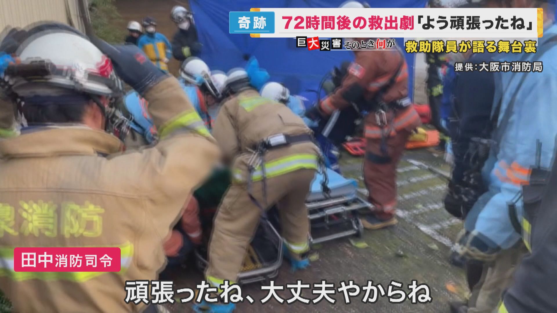 【大阪市消防局 田中真也消防司令】「(発災から)72時間までだと、“生存救出”の可能性が高い。時間は当然意識しました。だいぶたってるなと」