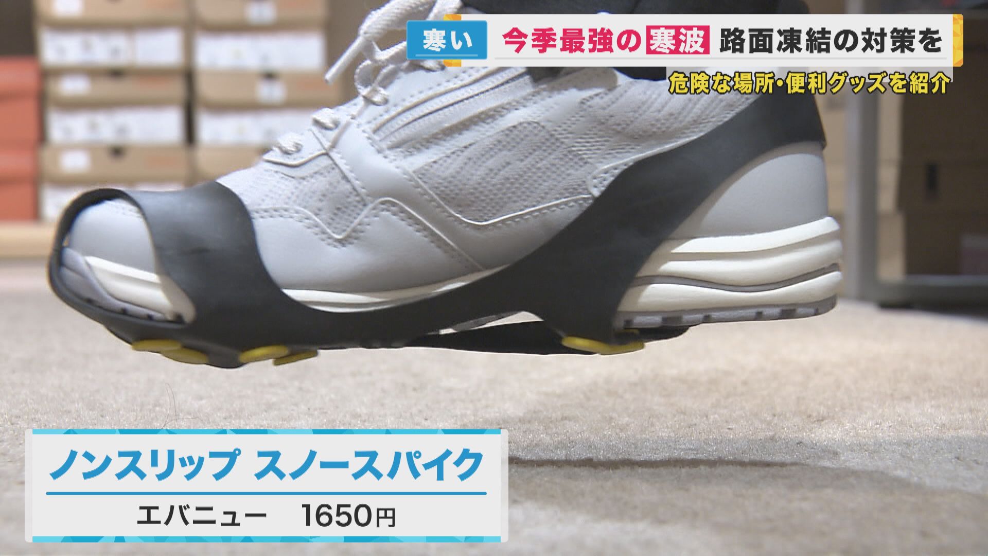 ギザギザの底の靴もない方は、靴にはめるアタッチメントタイプの滑り止めもあります。底の部分にスパイクがついています。ホームセンターやスポーツ用品店で売っていて、一つ持っていると便利だと思いますので、ご検討ください