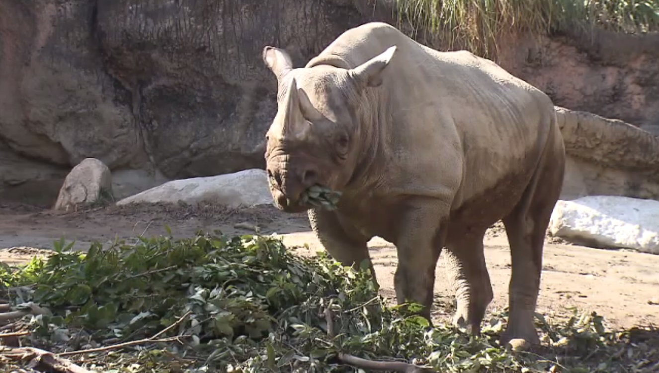 歩道不法占拠「103個の植木鉢」 動物園職員が「ニュースで見て、ほしいな」 キリンやサイのえさに活用 切りたての葉をさっそく「ぼりぼりスナック菓子みたい」