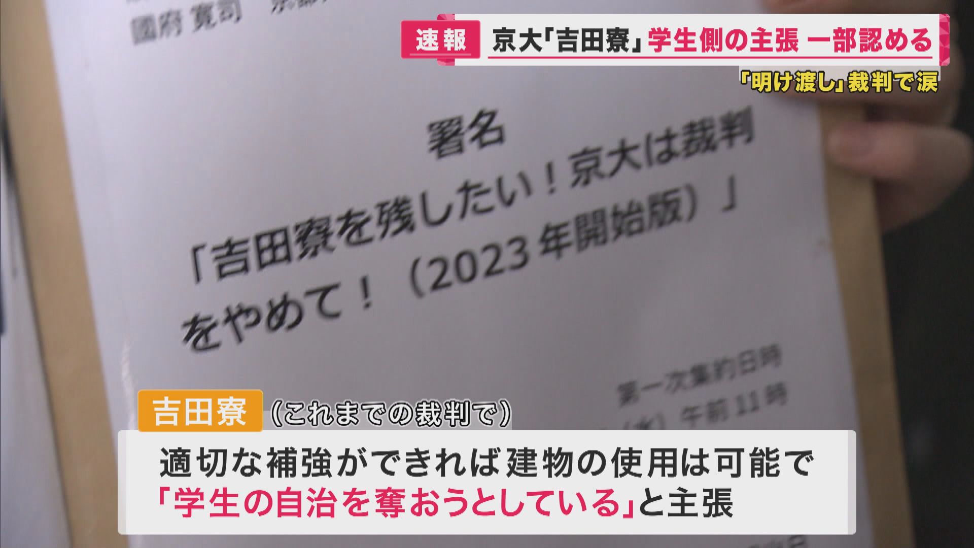 「思いもよらぬうれしい判決」と涙 学生の訴え一部認め居住認める判決 京大『吉田寮』立ち退き訴訟