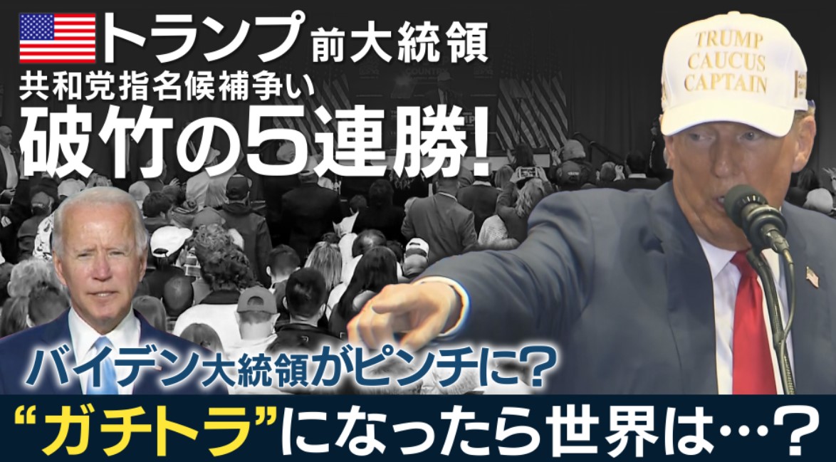 アメリカ大統領選の候補者を選ぶ、共和党の予備選挙で、トランプ前大統領が、破竹の5連勝。