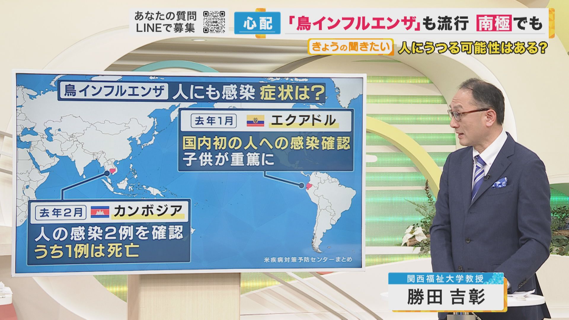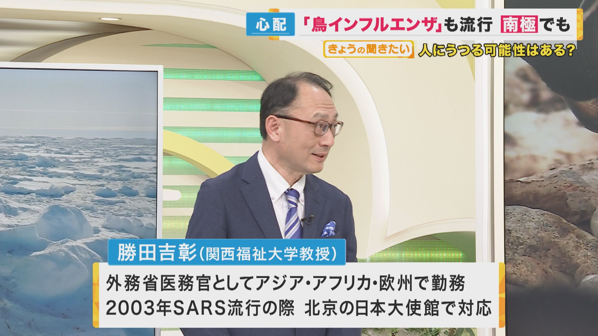 鳥インフルエンザが世界で猛威を奮っています。南極大陸に初めて鳥インフルエンザが上陸しました。渡航医学が専門の関西福祉大学教授・勝田吉彰さんにお話を伺いました。