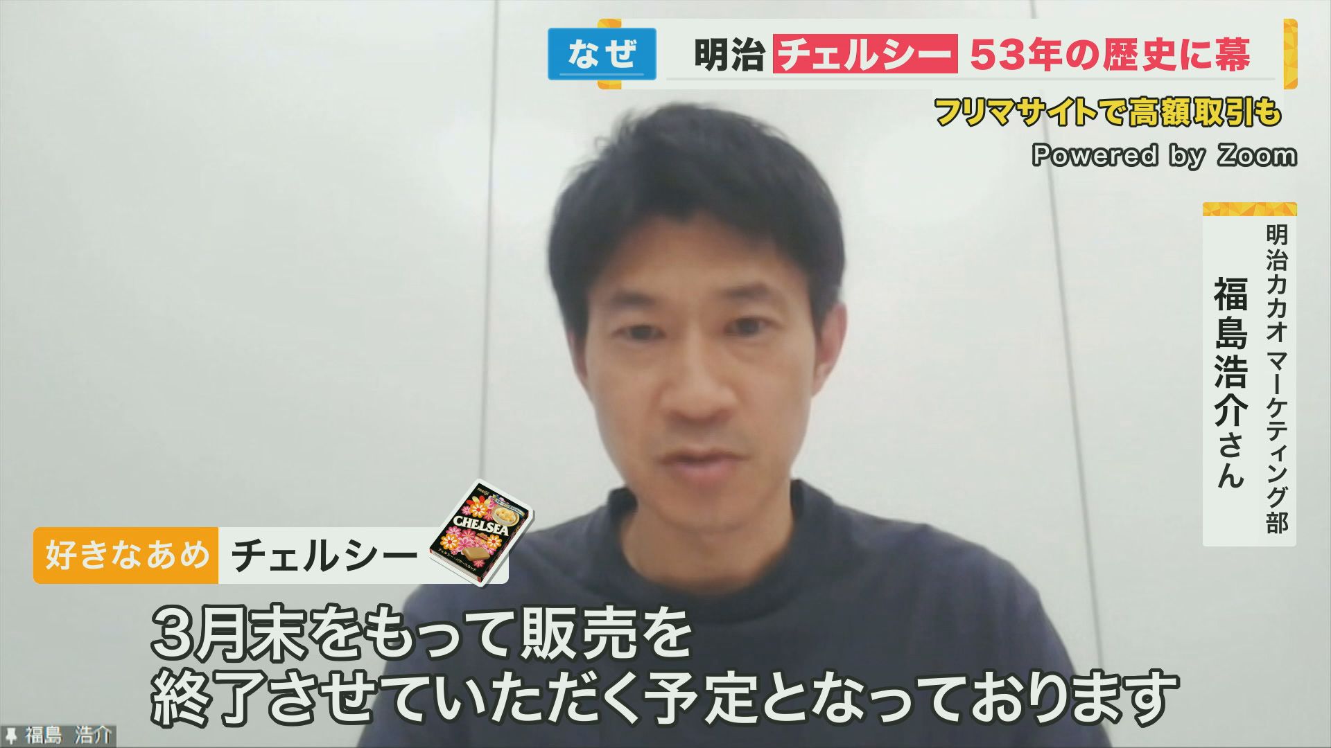 【明治カカオマーケティング部 福島浩介さん】「過去には別の商品もございましたが、キャンディーに関しては『チェルシー』が最後という形になります。いろんなものにお客様に嗜好が移られているというところは、ひとつ原因かなととらえております」