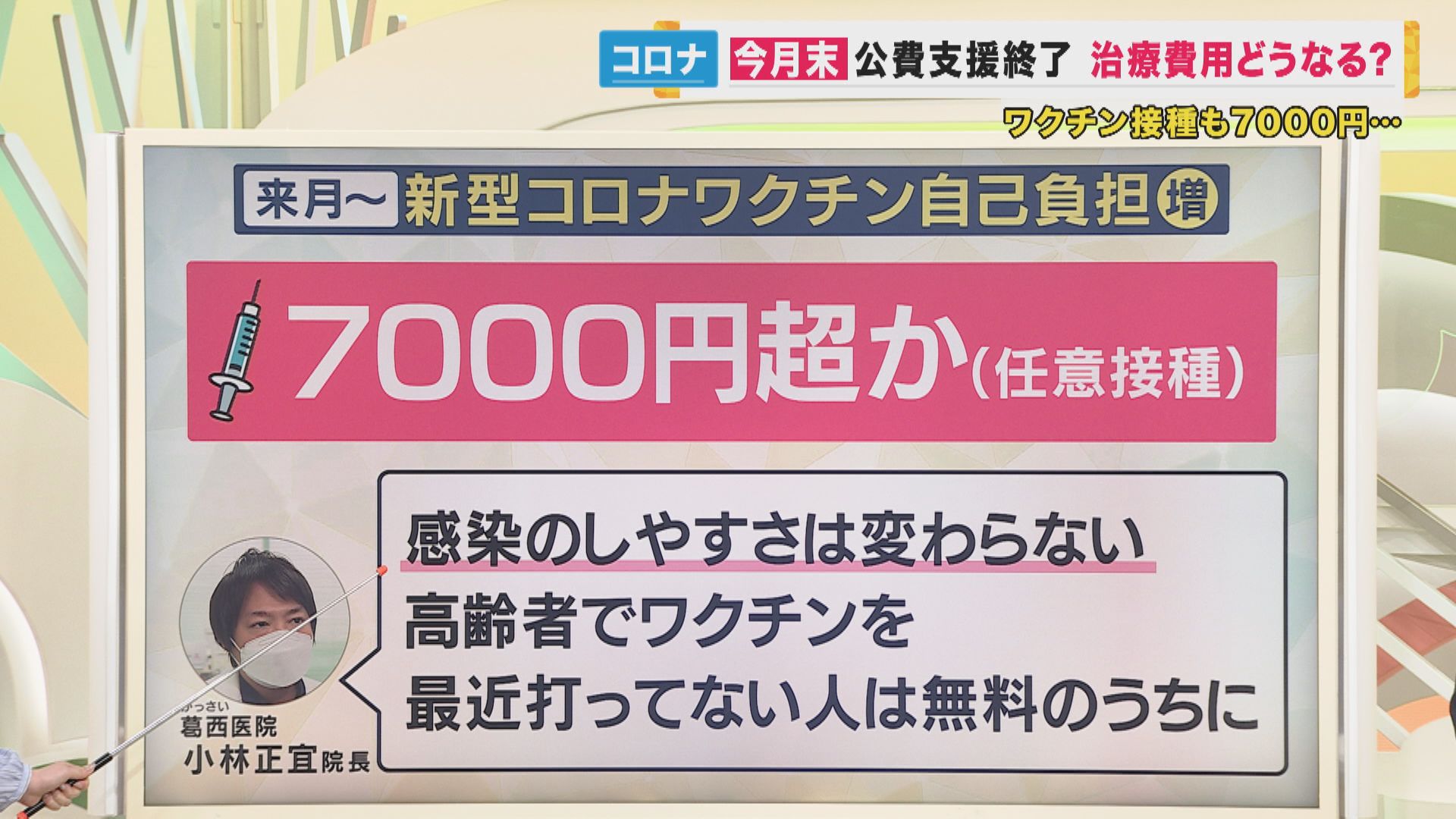 葛西医院の小林院長は、「感染のしやすさは変わらない。高齢者でワクチンを最近打っていない人は無料のうちに」と話しています。 医療費負担が変わっても、新型コロナの危険性は変わりませんので、引き続き注意が必要です。