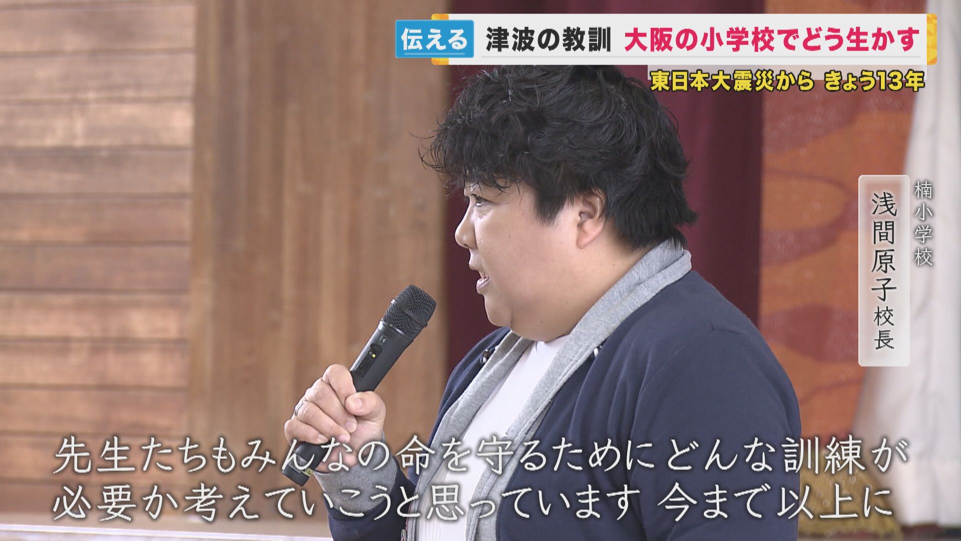 【楠小学校 浅間原子校長】「閖上に書かれていた言葉を紹介します。閖上の方言で書かれていたんだけど、『地震が来たらとにかく逃げろ!からぶってもいいんでないの 助かれば』。“地震が来たらとにかく逃げろ。間違いでもええやん、助かったら”という意味です」