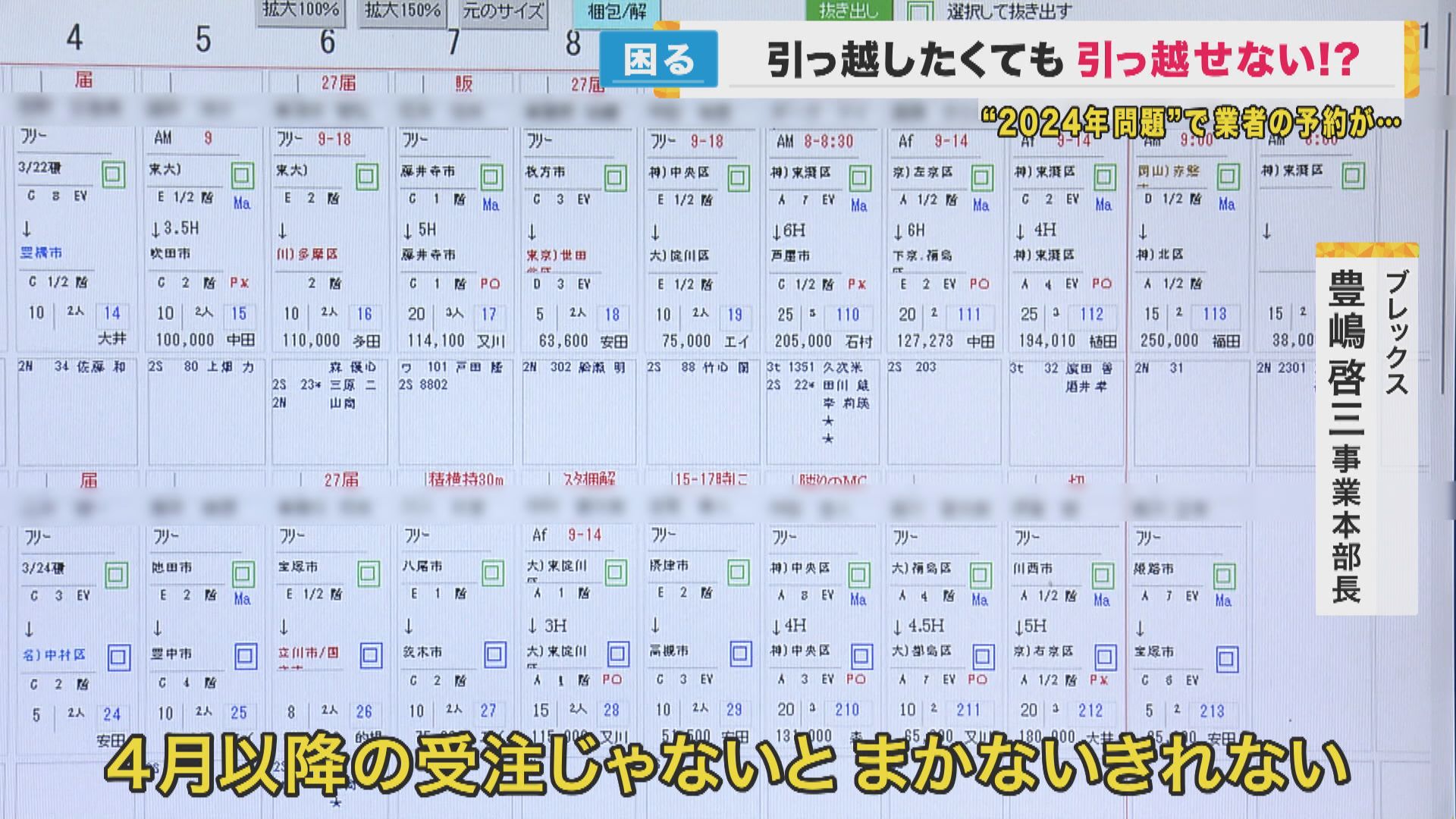 【ブレックス 豊嶋啓三事業本部長】「前年から比べますと、だいたい3~4割、件数が増えている。3月はもう引っ越しを受けられない状況が、10日前ぐらいから続いている」