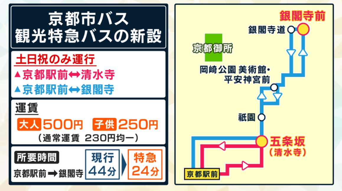 「オーバーツーリズム」対策を京都市が発表 人気観光地だけに停車『特急バス』の導入 6月1日から開始