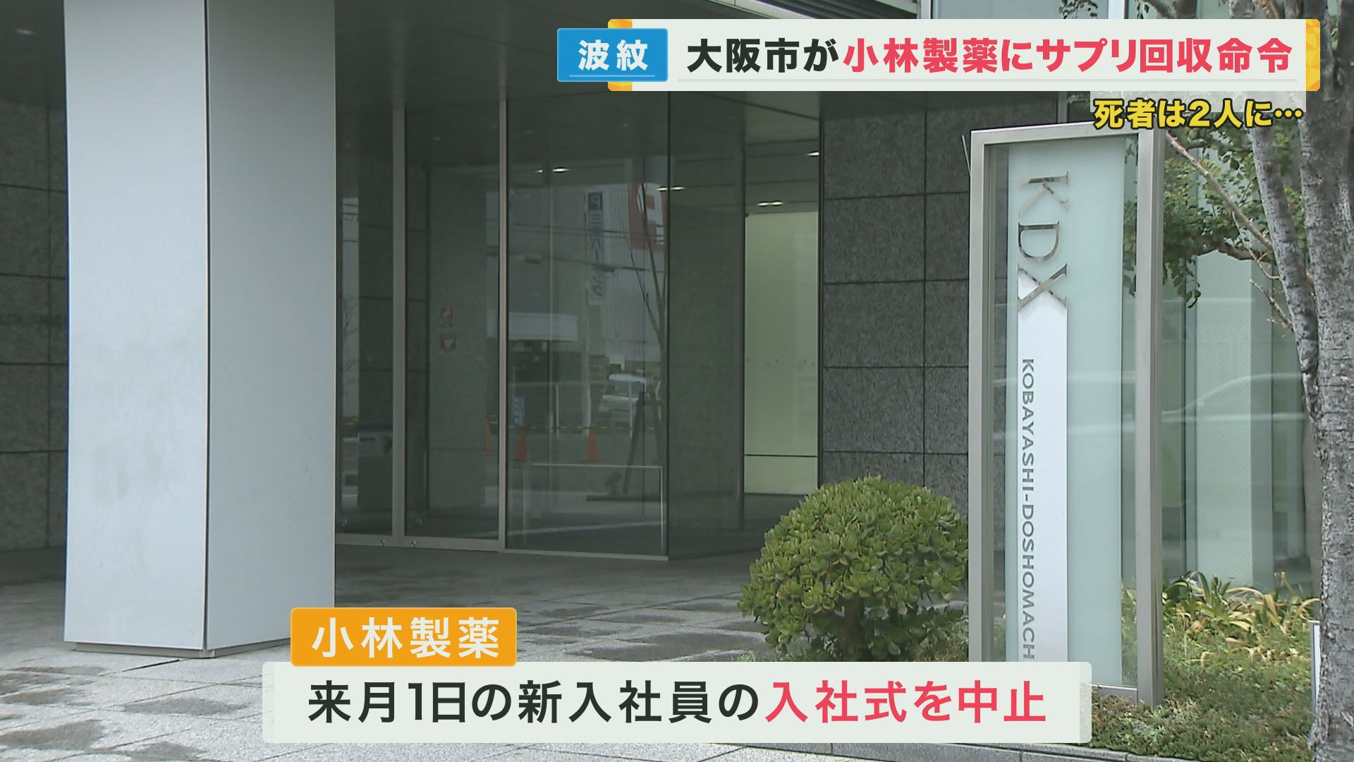 この問題を受け小林製薬は4月1日に大阪市内のホテルで開催予定だった新入社員の入社式を中止すると発表しました。今のところ入社を辞退した人はいないということです。