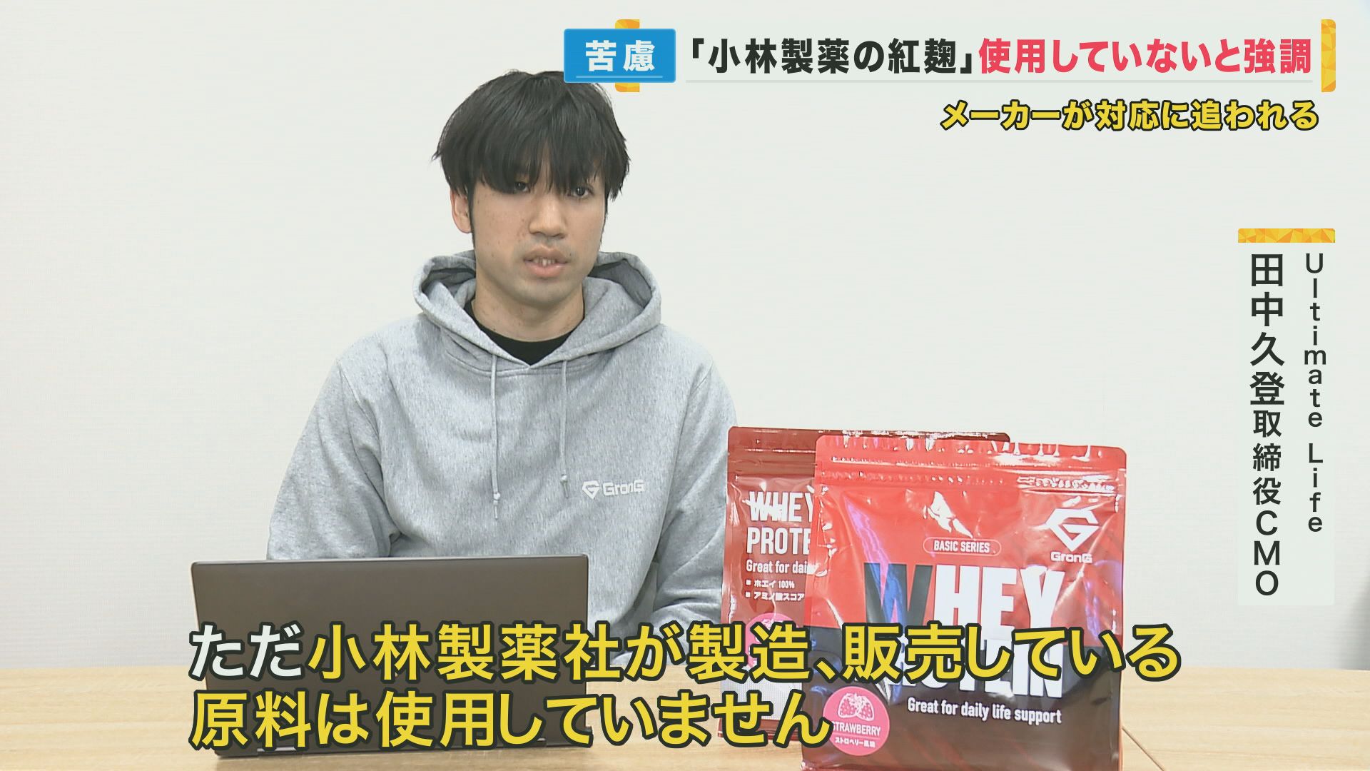 【Ultimate Life田中久登取締役CMO】「こちらのプロテインであったりとか、アミノ酸サプリメントの一部の商品に関しては紅麹色素を使用しております。ただ小林製薬社が製造、販売しているような原料は使用していません」