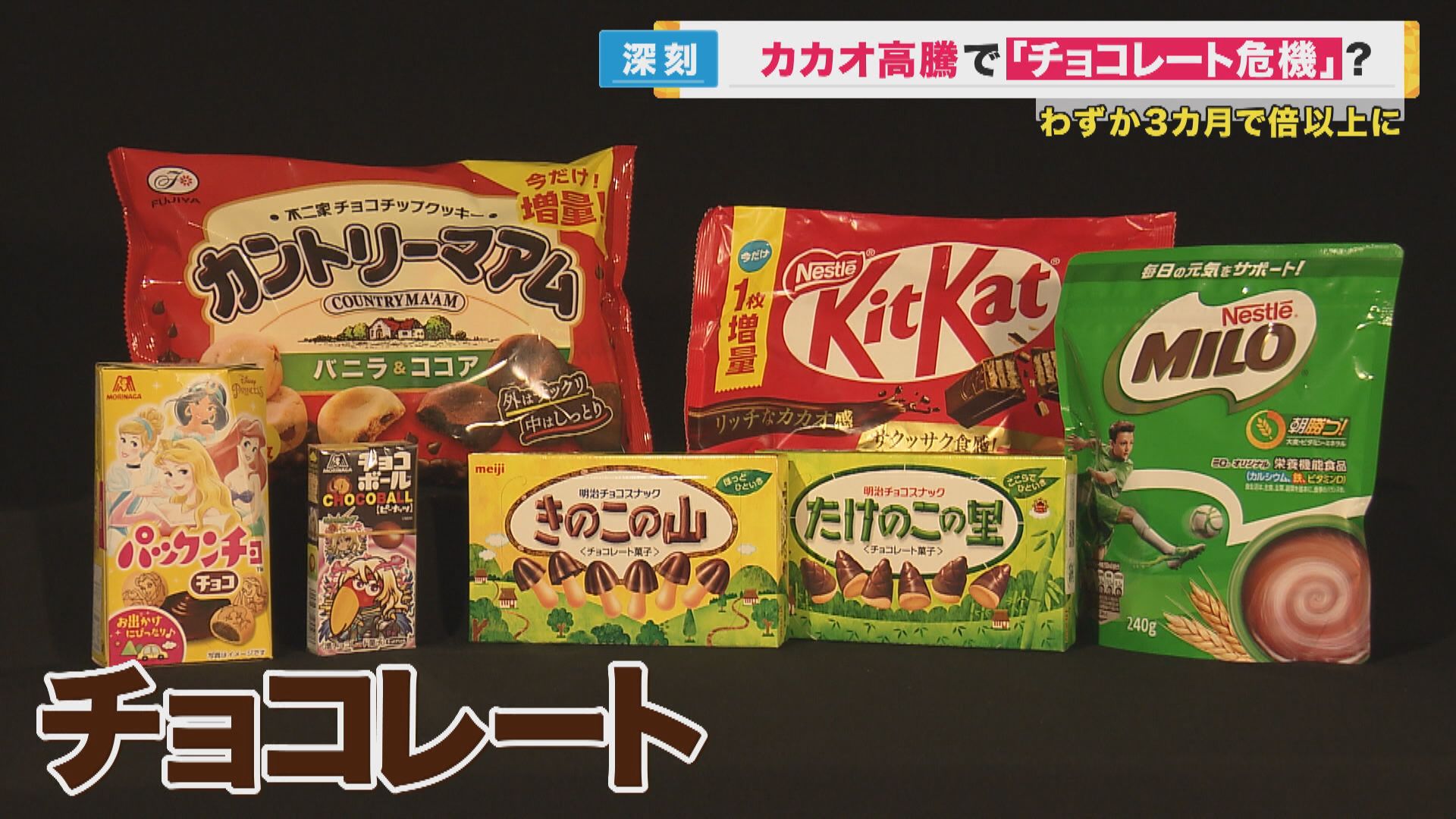 そしていま、大ピンチを迎えているのがチョコレートです。明治は4月から「きのこの山」や「たけのこの里」を値上げすると発表。森永製菓もチョコボールを6.5%値上げするとしています。
