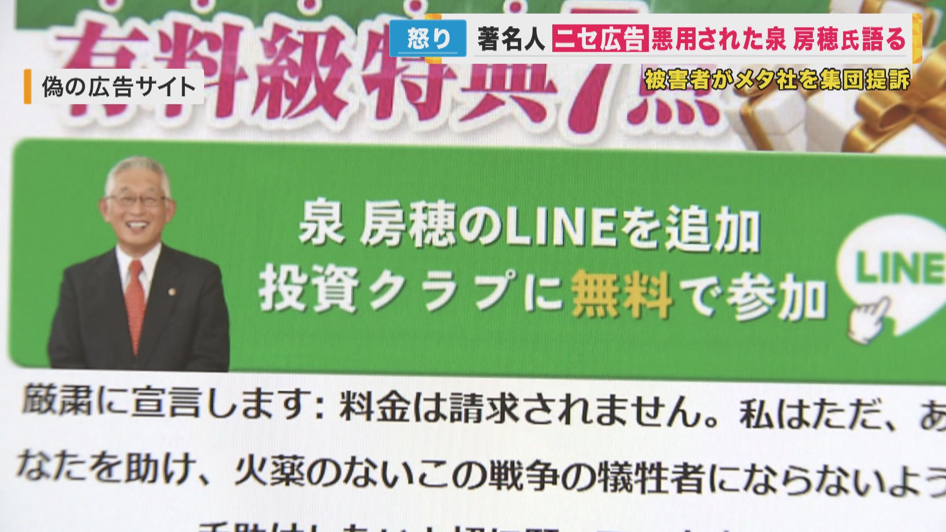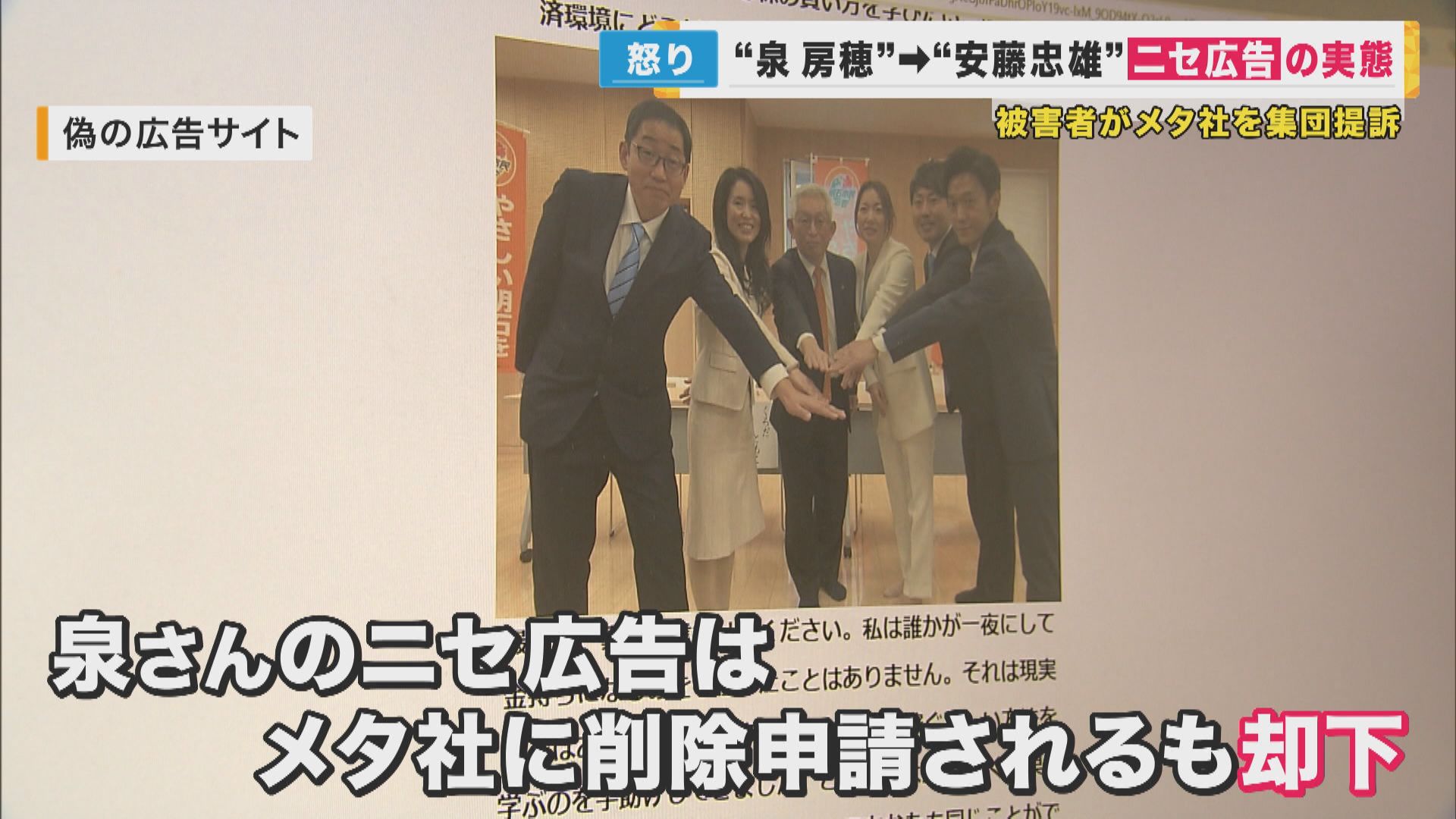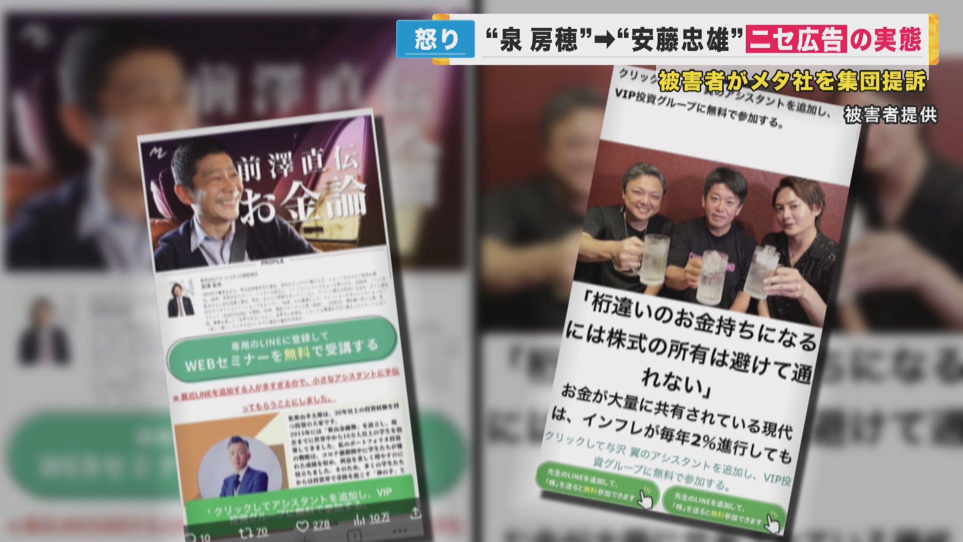 【菊地幸夫弁護士】「要するにメタ社は、こういう広告が事業収入の中の主要部分を占めていると思います。その莫大な利益を上げている一方で、このように人に損害を与えるような事象も発生していると。法律の中の1つの考え方として、利益の帰する所に、責任も帰すると。だから当然、その利益でしっかり、見逃すことがないような対策に十分な資金を投入しなさいということになると思います。これだけ偽物ということが明らかになっても、いまだに泉氏のニセ広告が出ているのは、異常だと思います」