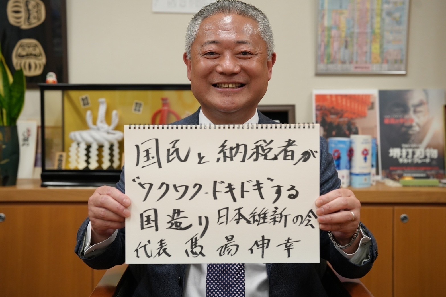衆院選3回以内で単独過半数を獲得し、単独政権をつくる…これが維新の目標だ。自民と維新の2大政党で競い合うという。政権を担うなら、どんな国を目指すのか。馬場代表は「国民と納税者が“ワクワク・ドキドキ”する国造り」を掲げた。