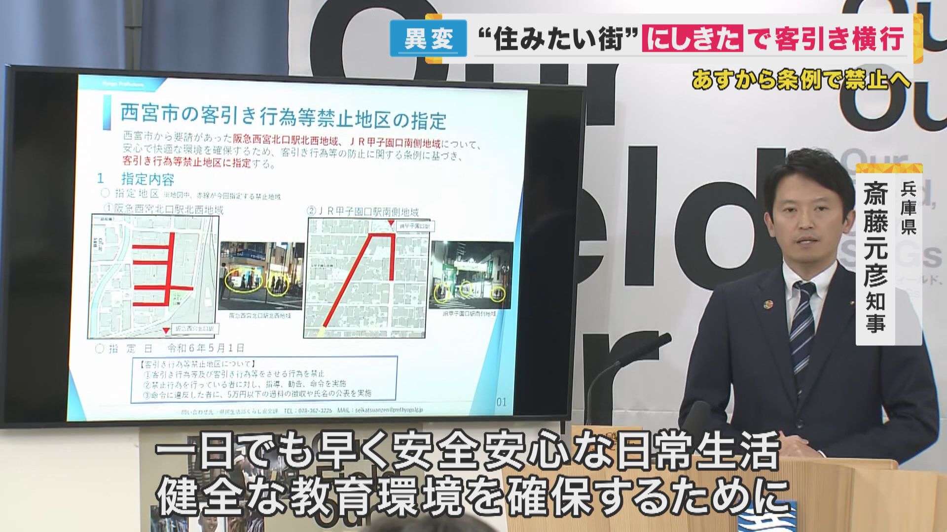 【兵庫県斎藤元彦知事】「1日でも早く安全安心な日常生活、健全な教育環境を確保するために、客引き行為等の条例に基づいて、5月1日に禁止区域に指定したい」