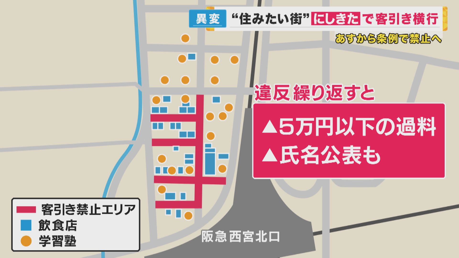 5月1日から阪急・西宮北口駅周辺が客引き行為の禁止区域となります。 大学や塾が多い文教エリアで、客引き行為が、なぜ横行しているのか取材しました。