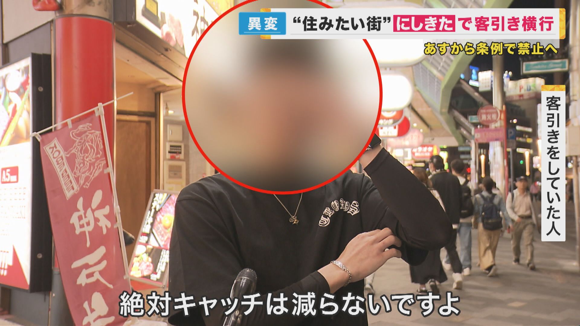 【客引きしていた人】「稼げるっすよ。(1カ月で)4、5、60(万)とか人によるけど。(Q.禁止区域の認識は?)悪質じゃなければ(OK)みたいな感じ。絶対キャッチは減らないですよ」