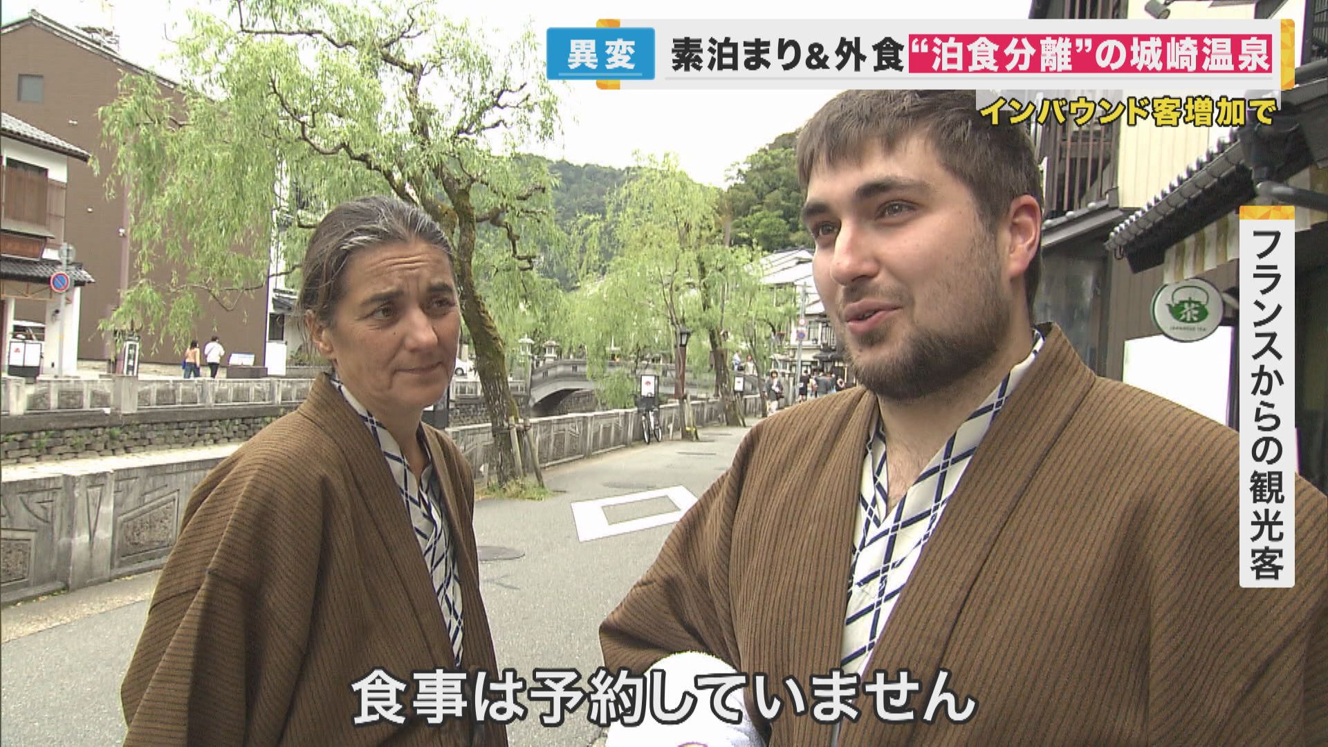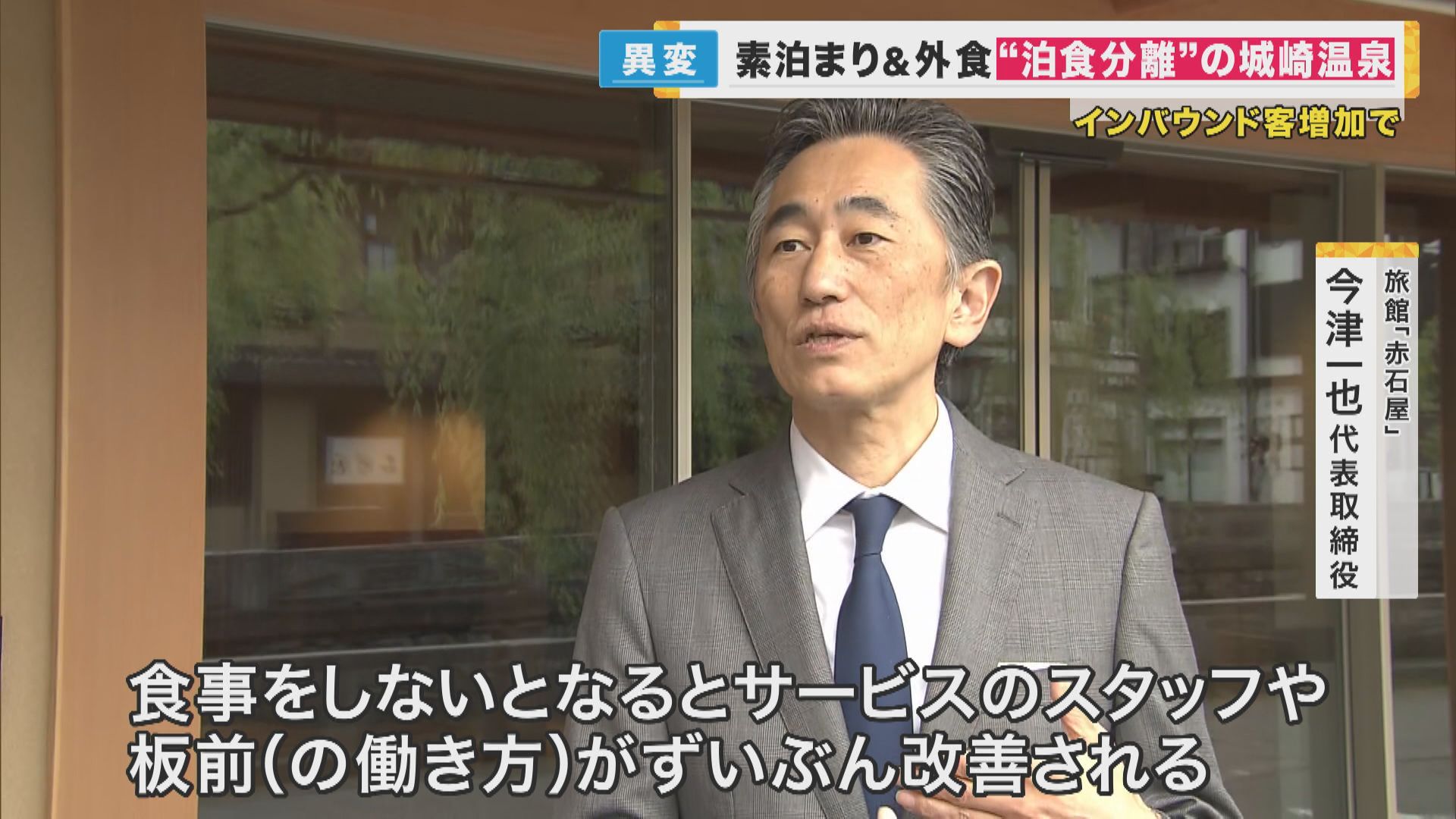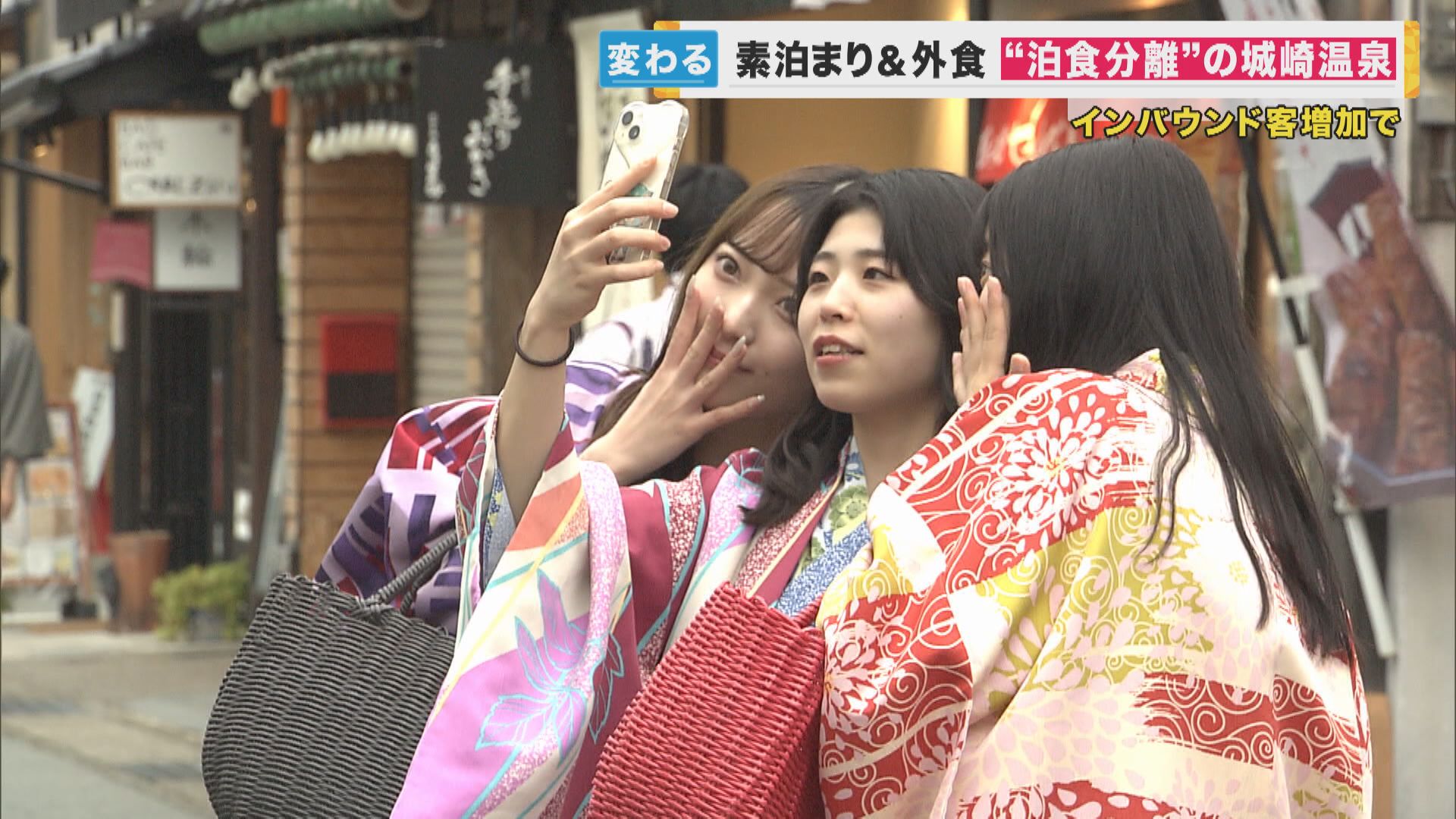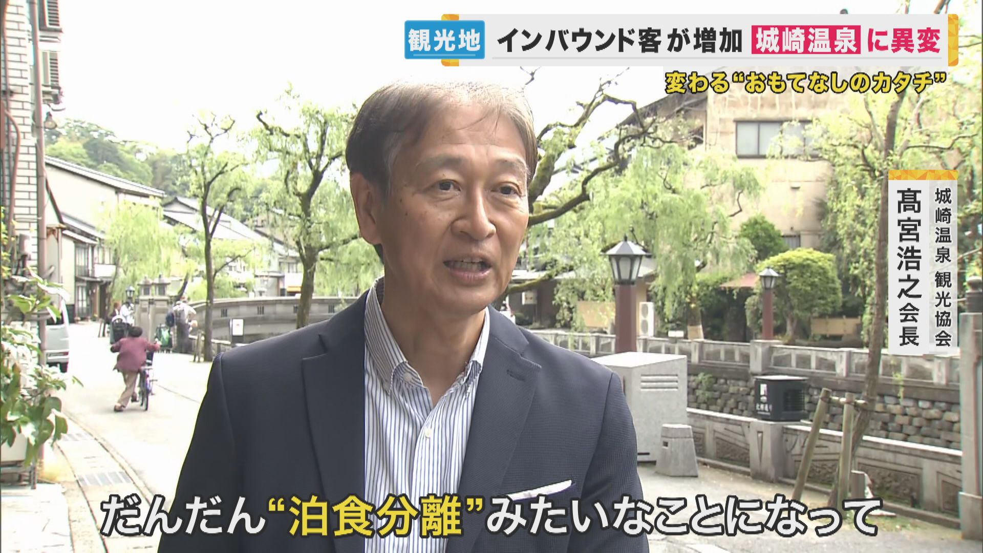 【城崎温泉観光協会 高宮浩之会長】「15年、20年くらい前までは、(旅館は)ほとんど1泊2食付きだけだった。それがだんだんいわゆる『泊食分離』みたいなことになって」