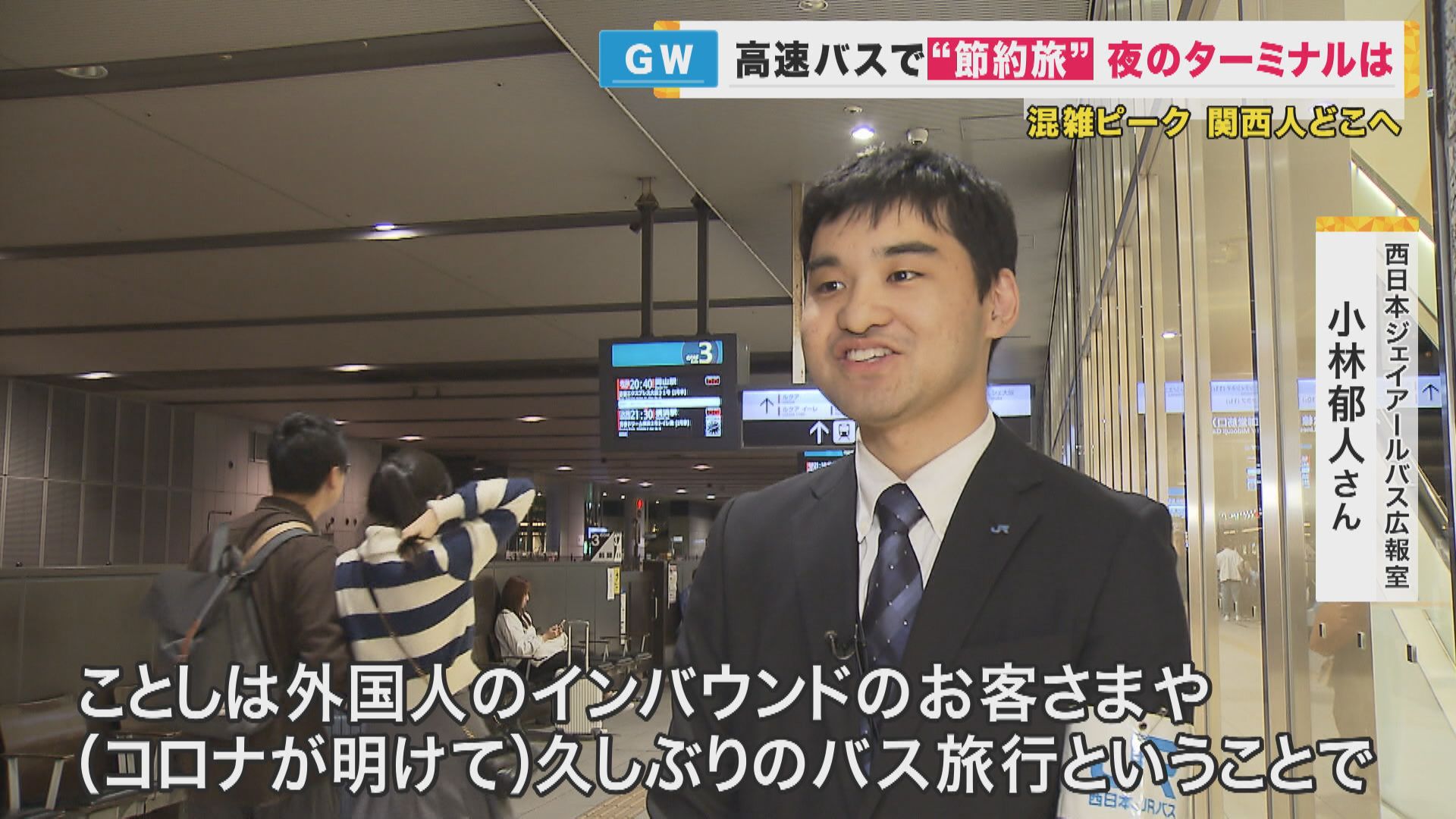 【西日本ジェイアールバス広報室 小林郁人さん】「今年はですね、外国人のインバウンドのお客さまであるとか、(新型コロナが明けて)久しぶりのバス旅行ということで、バスのご利用が不慣れなお客さまが多い印象です」