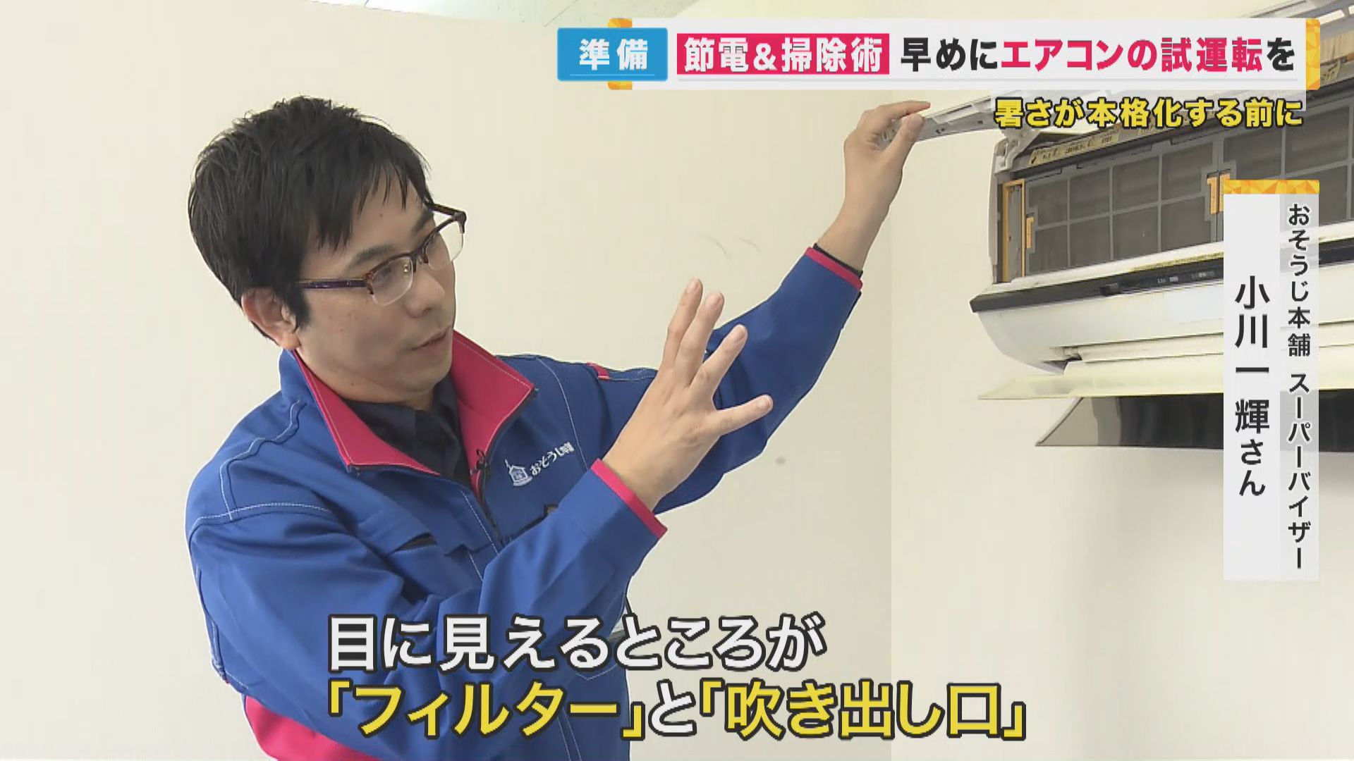 【おそうじ本舗スーパーバイザー 小川一輝さん】「ご家庭でやられるとき、目に見えるところが『フィルター』と『吹き出し口』。見えるところの掃除」
