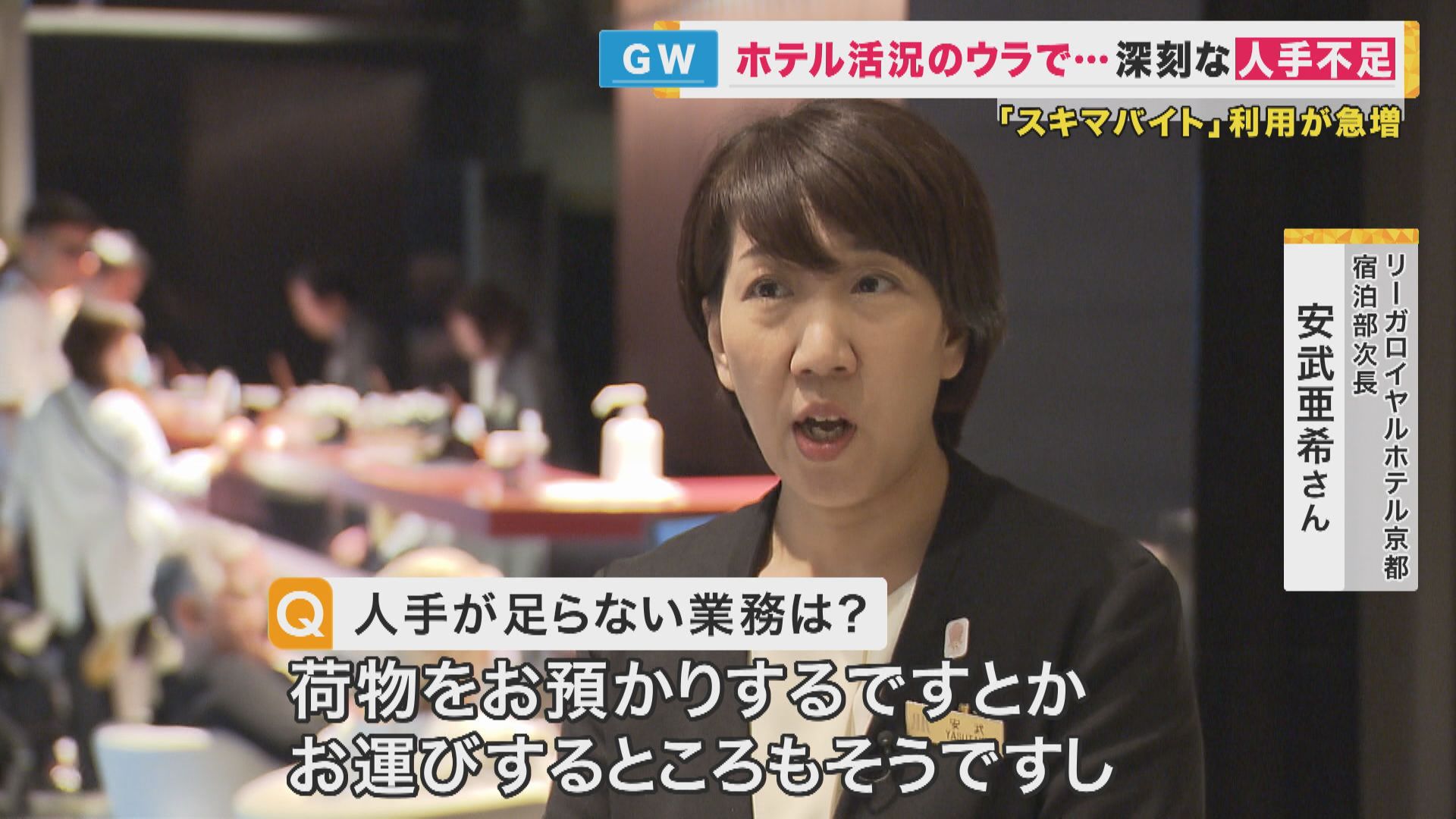 【リーガロイヤルホテル京都宿泊部次長 安武亜希さん】「どこも人手が足りていないというのが現状。やはり人員を取り合っているところはあると思う」