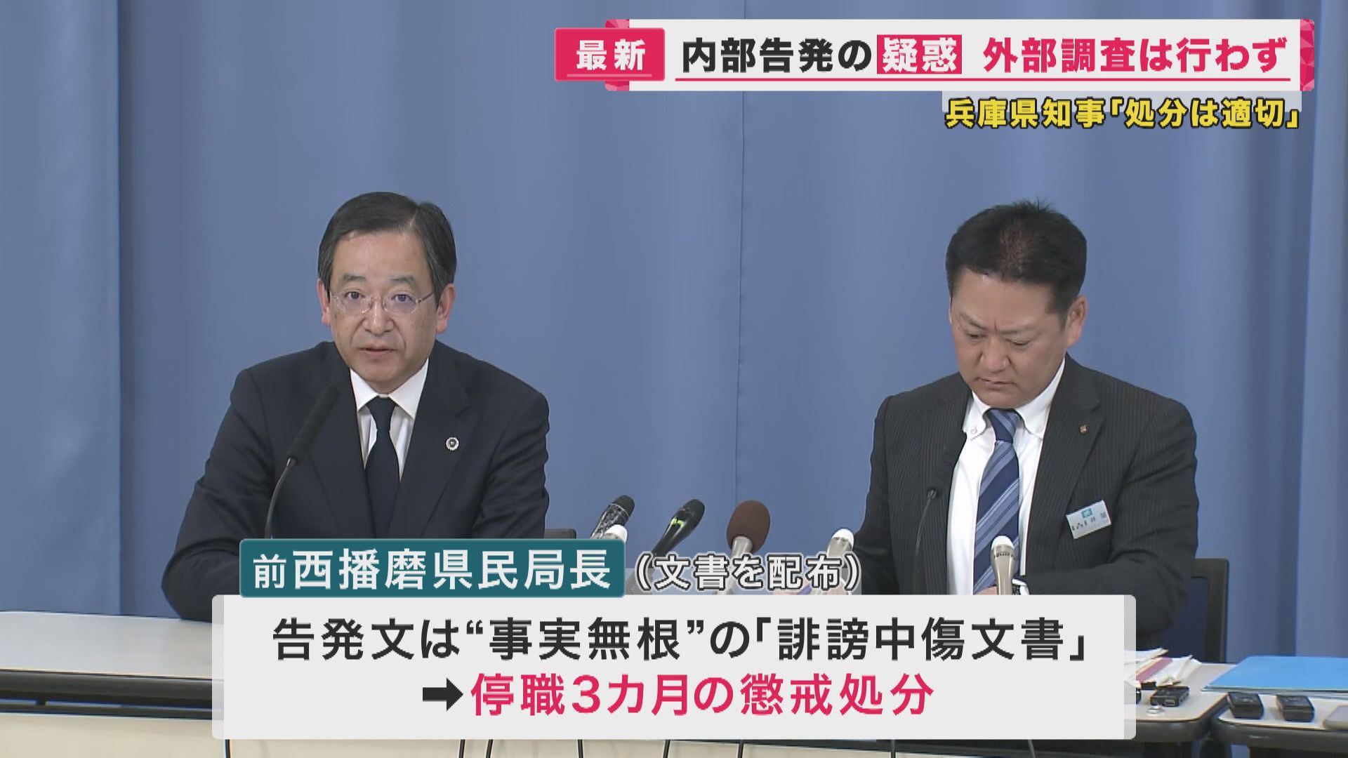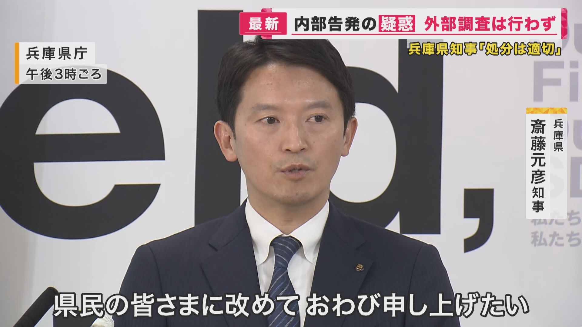兵庫県知事の「疑惑」を「内部告発」した幹部職員が懲戒処分を受けた問題。 知事は県で客観的な調査が行われたとして、外部調査を行わない考えを示しました。