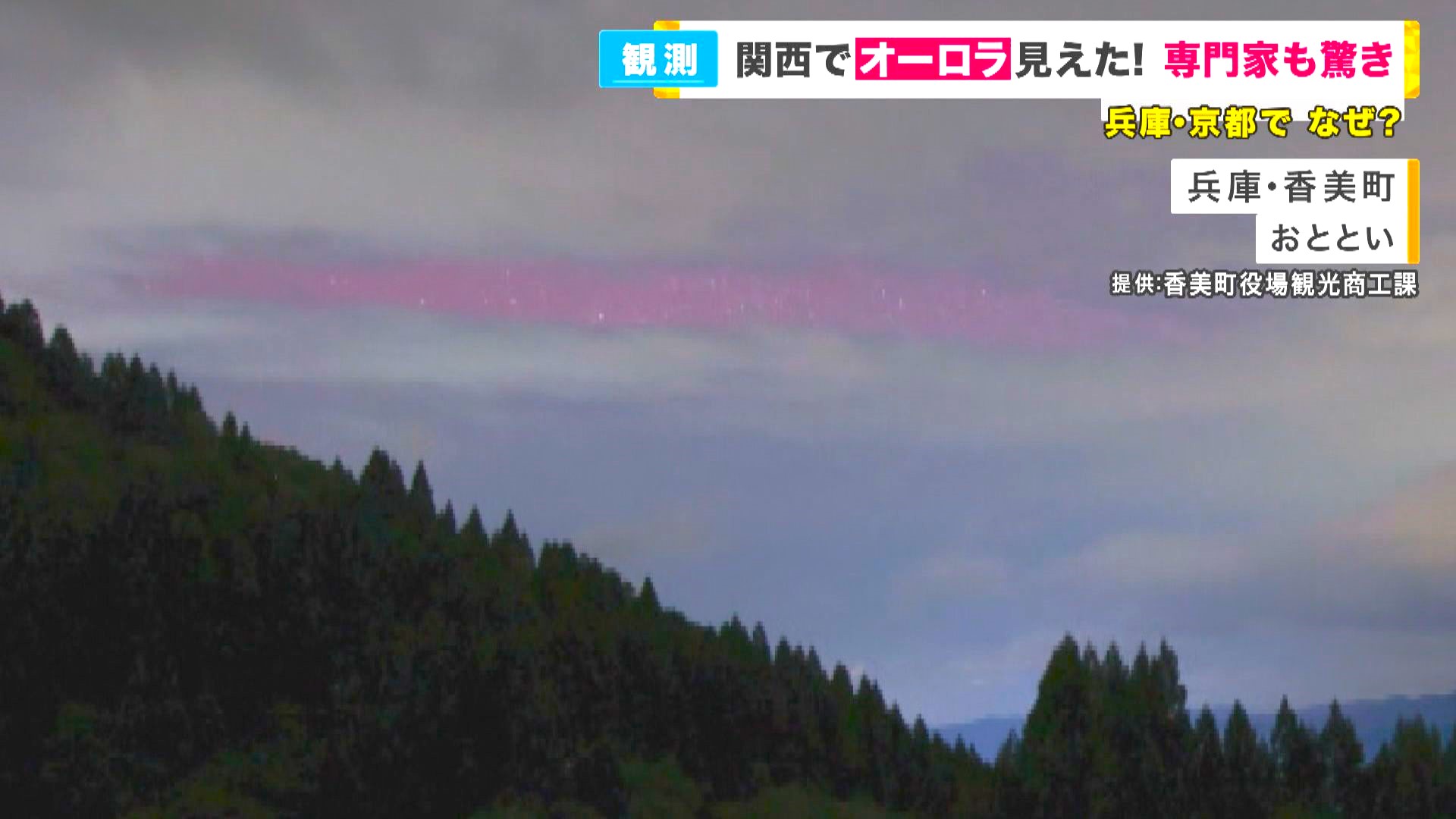 「まさか映っちゃった」 関西でも“オーロラ”撮影に成功 役場のSNSは大反響 感動的な反面「通信障害多くなる」恐れ