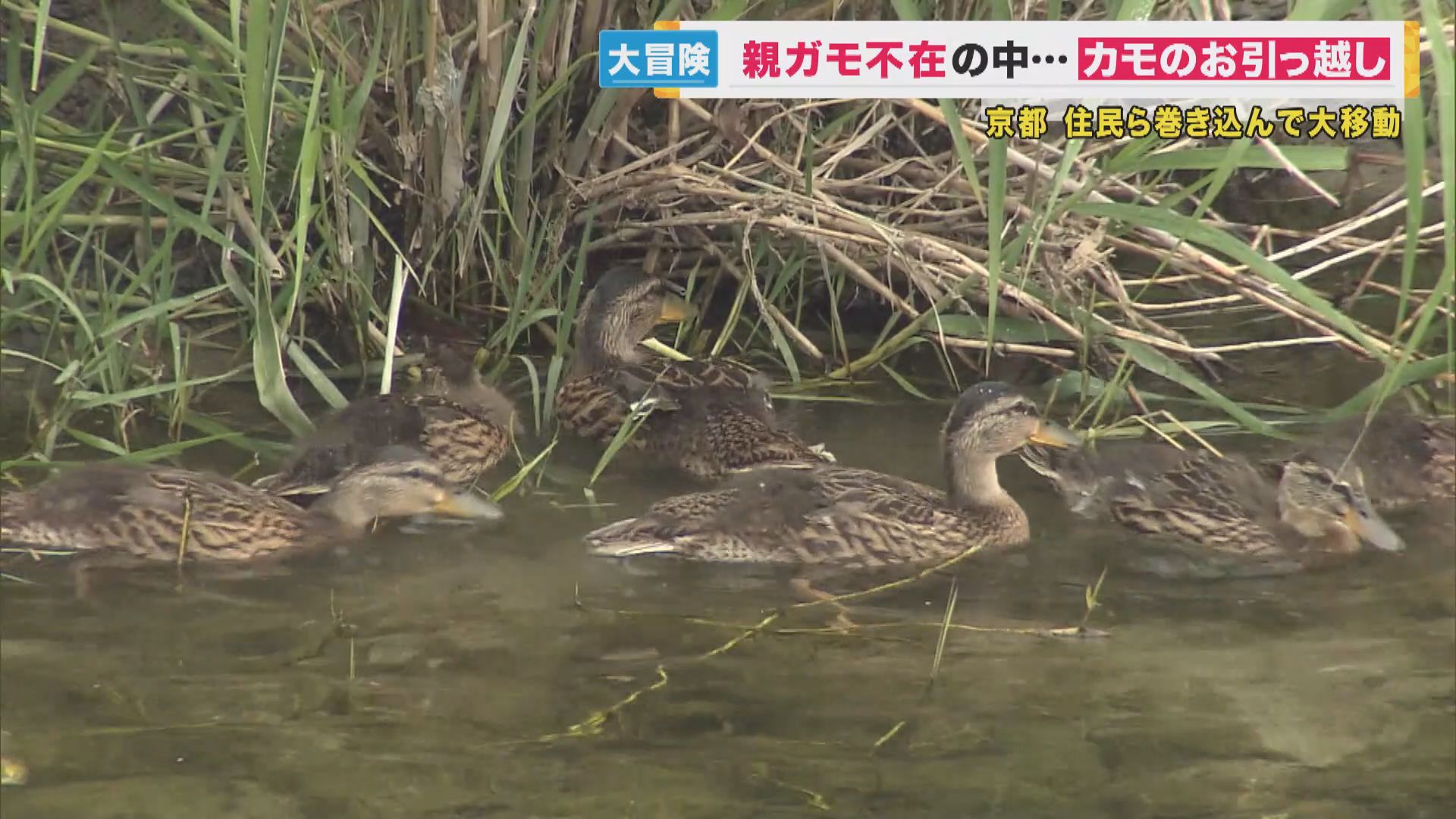 カモのお引っ越し まさかの親ガモ不在 地域住民が見守るなか…6羽の子ガモ3時間かけて新居へ
