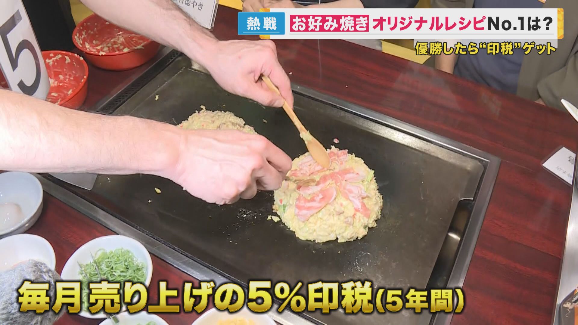 お好み焼きチェーン「ゆかり」による『TEKO‐1グランプリ』が、5月22日、14年ぶりに開催されました。応募があった1231点から最終審査に残った5人が、オリジナルレシピの商品化を目指します。