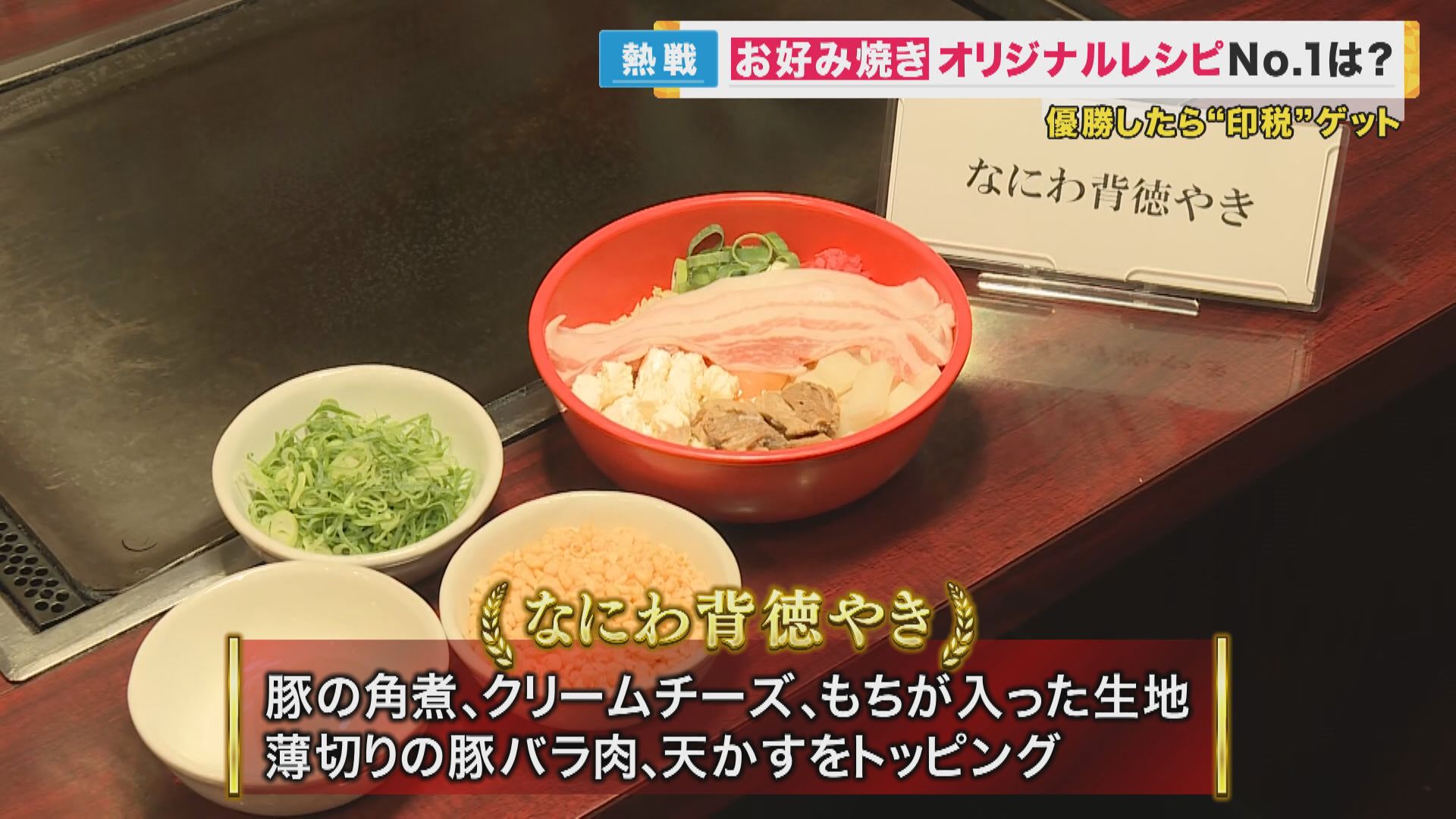 優勝したのは、大阪市の会社員の浅野眞由美さんの「なにわ背徳やき」です。