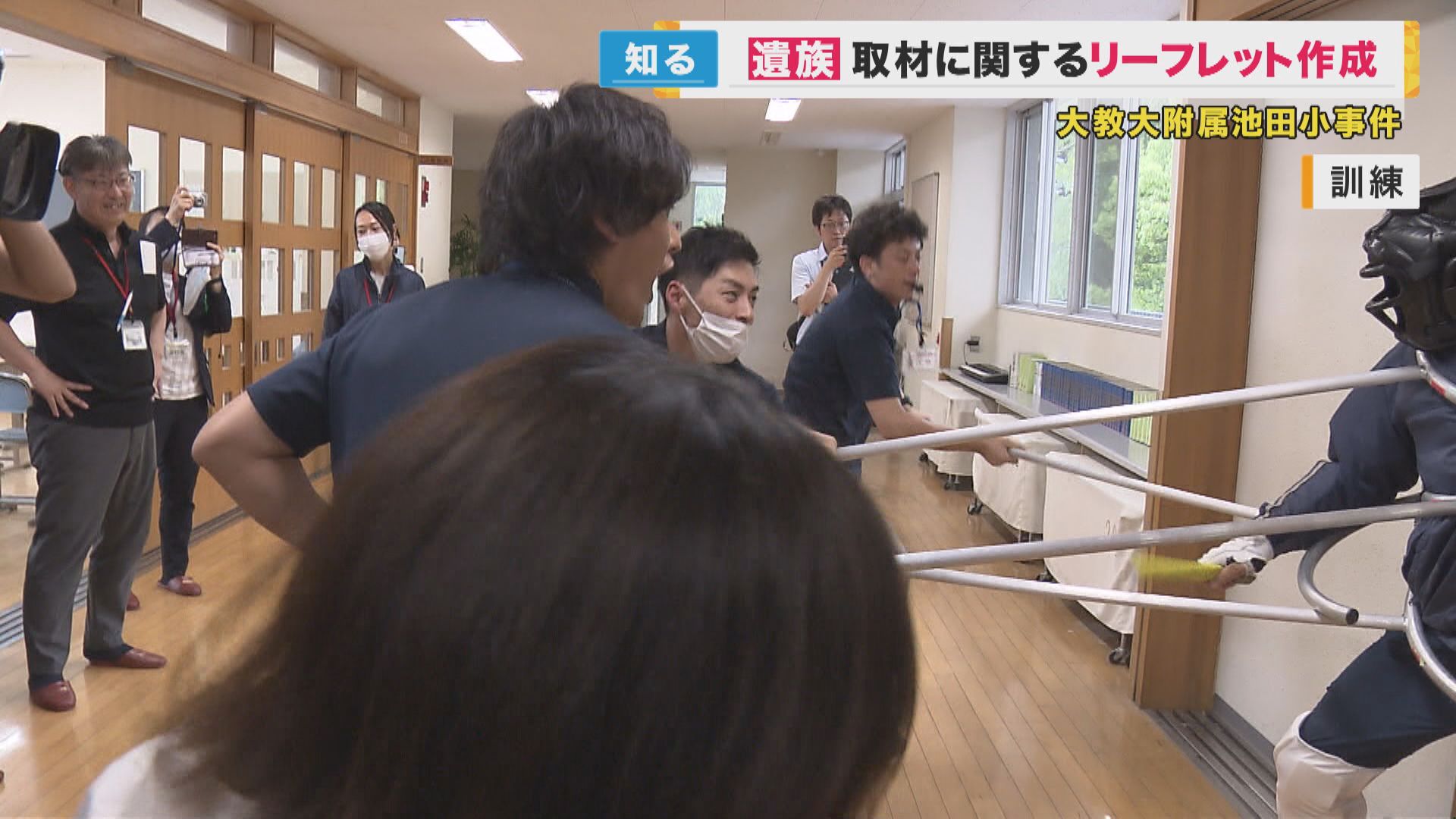 28日、附属池田小学校で行われた警察官と教職員による訓練。刃物を持った不審者をさすまたで制圧する手順などが確認されました。事件の教訓を生かすため毎年欠かさず行われています。