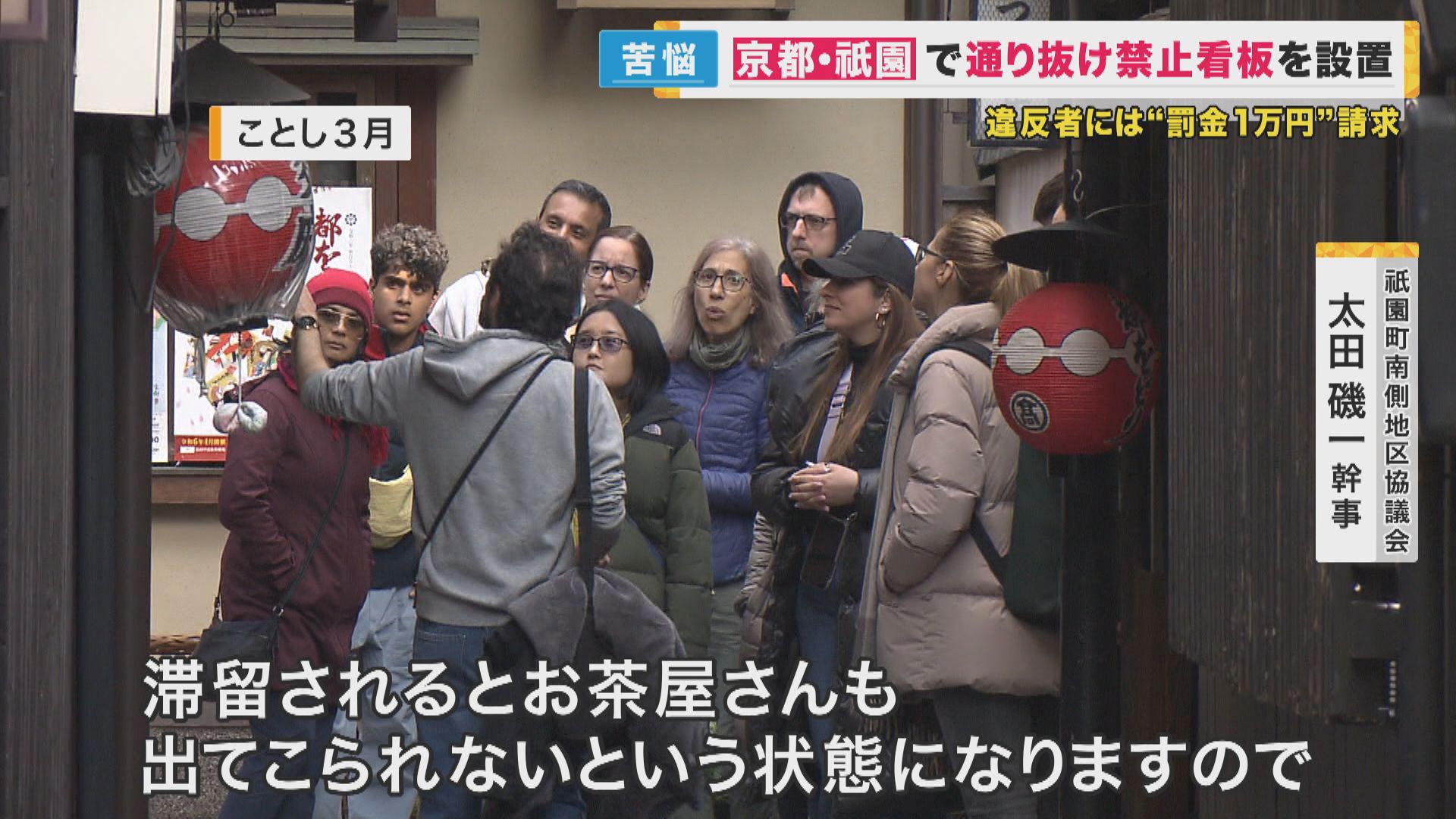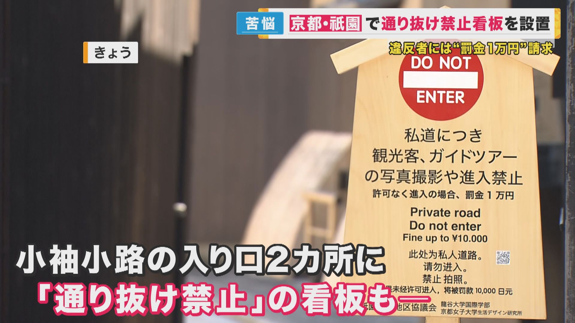 観光客が「私道」を通り抜けることが問題となっていた京都・祇園で、「通行禁止」の看板が設置されました。違反した人は「罰金」として1万円が請求されます。