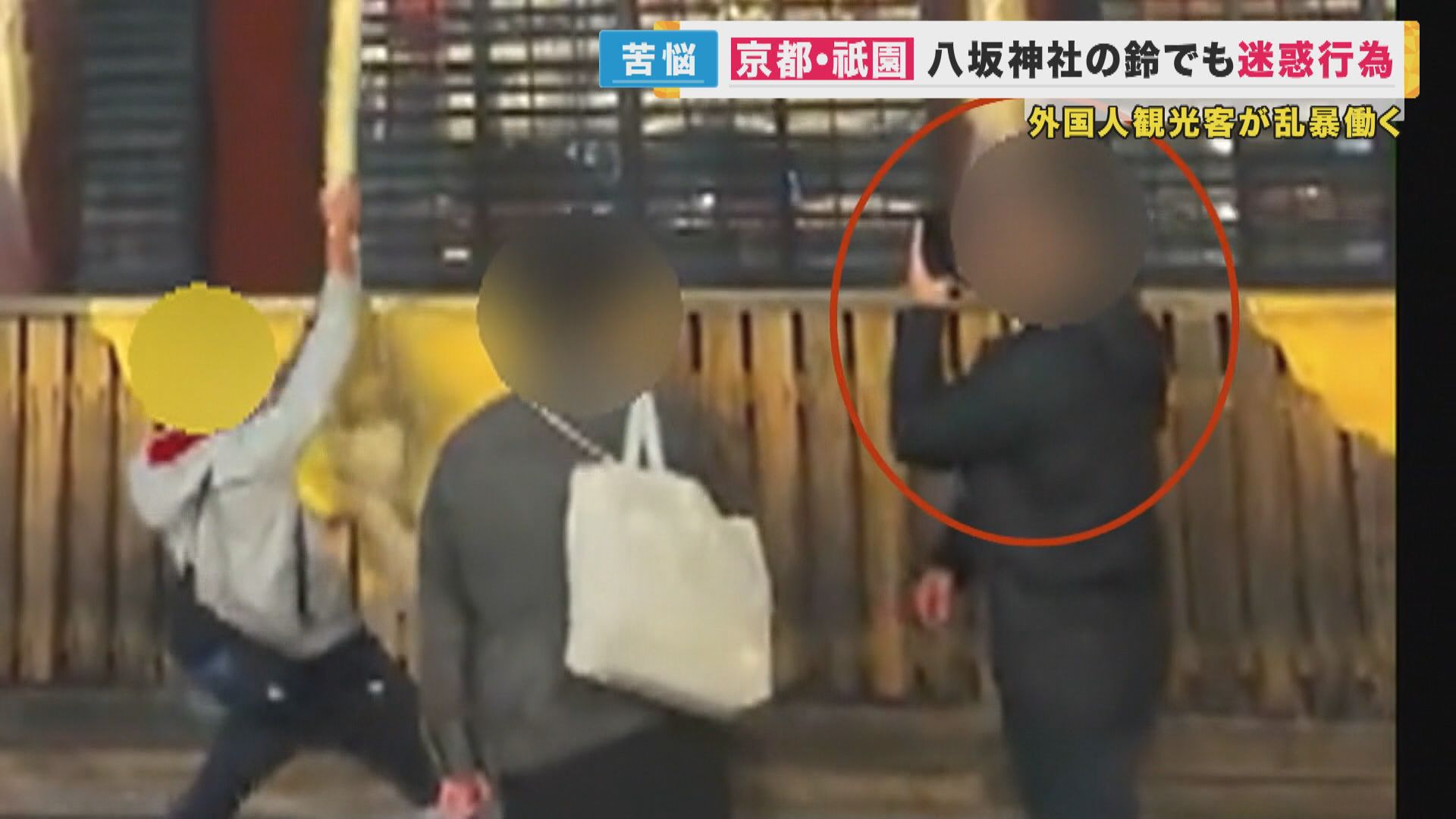 その様子を撮影した男性がやめるよう注意をしたところ、不機嫌な顔をされたそうです。 八坂神社によるとこうした迷惑行為が後を絶たないということです。