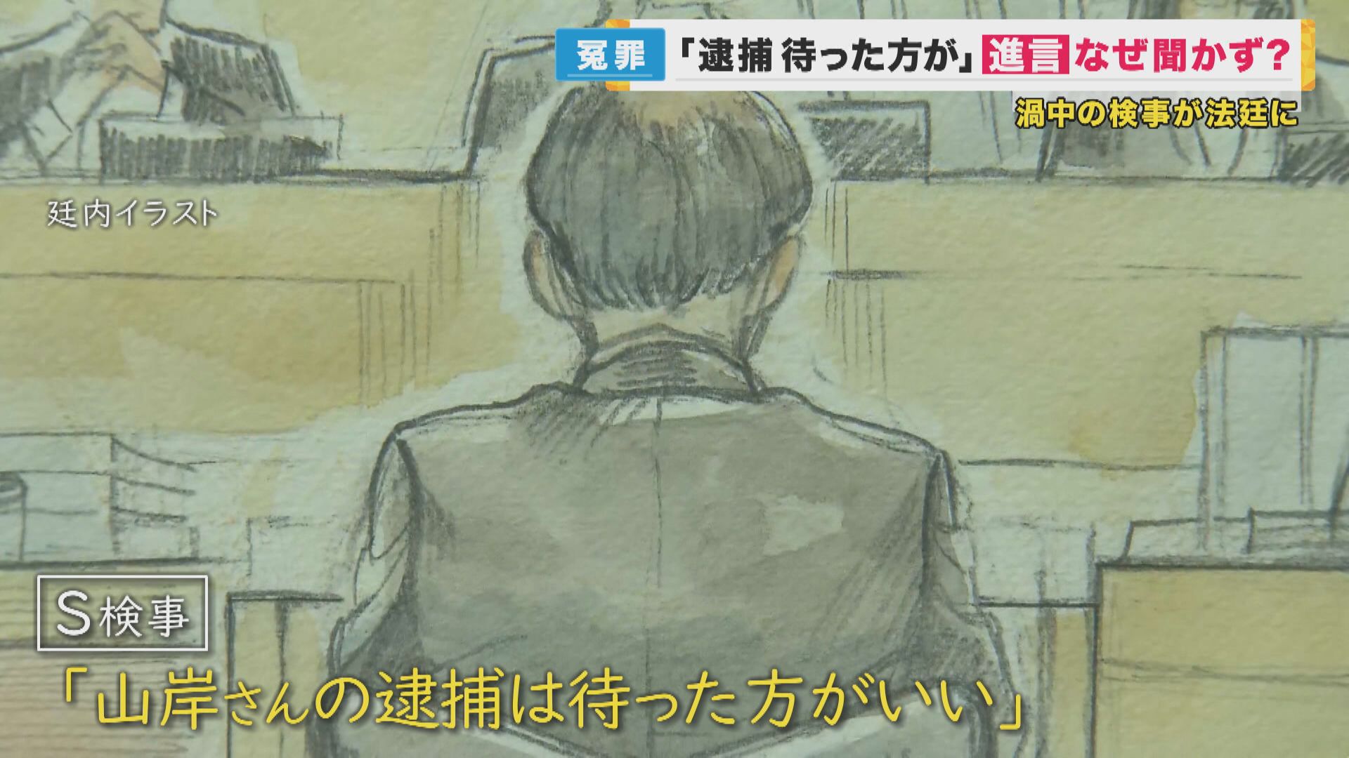 S検事は、Y氏が供述で山岸さんの関与を撤回したことを受けて、捜査を主導した主任検事に「山岸さんの逮捕は待った方がいい」と伝え、撤回した調書の作成を進言していた。