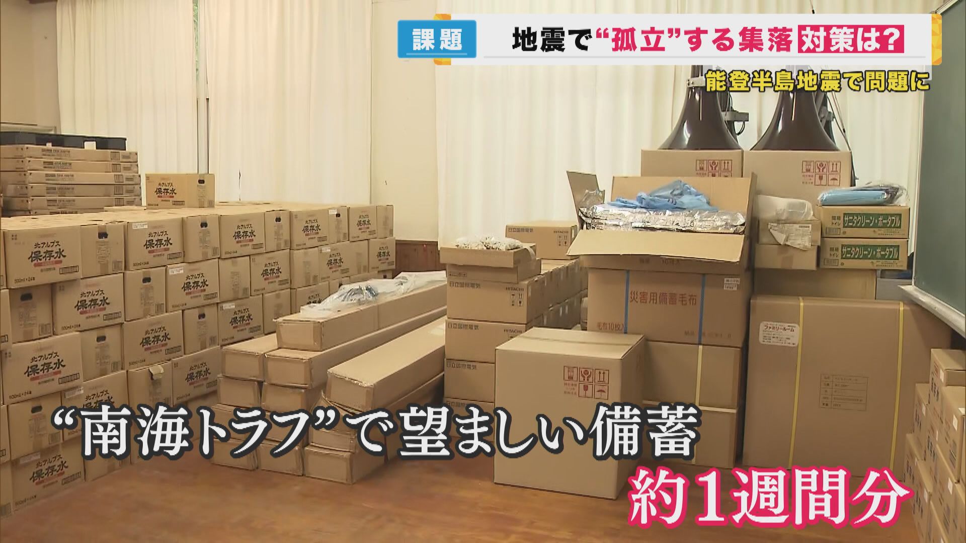 【白浜町担当者】「避難所を開設する時に、備蓄しているものを置いている倉庫です。住民で1日分備蓄をお願いしていて、さらに県の備蓄を合わせて3日分。3日たてば県外からの緊急輸送ルートで支援物資が届くという計画をしています」