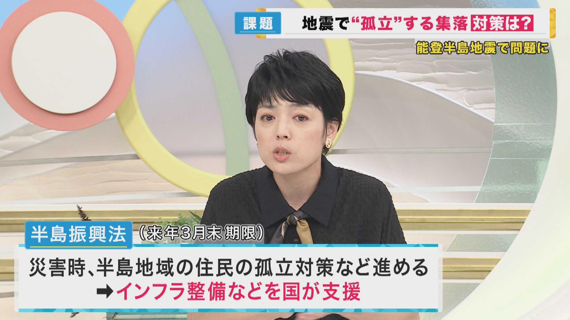 孤立集落が出ないように対策するための「半島振興法」について、期限切れになる問題があるといいます。