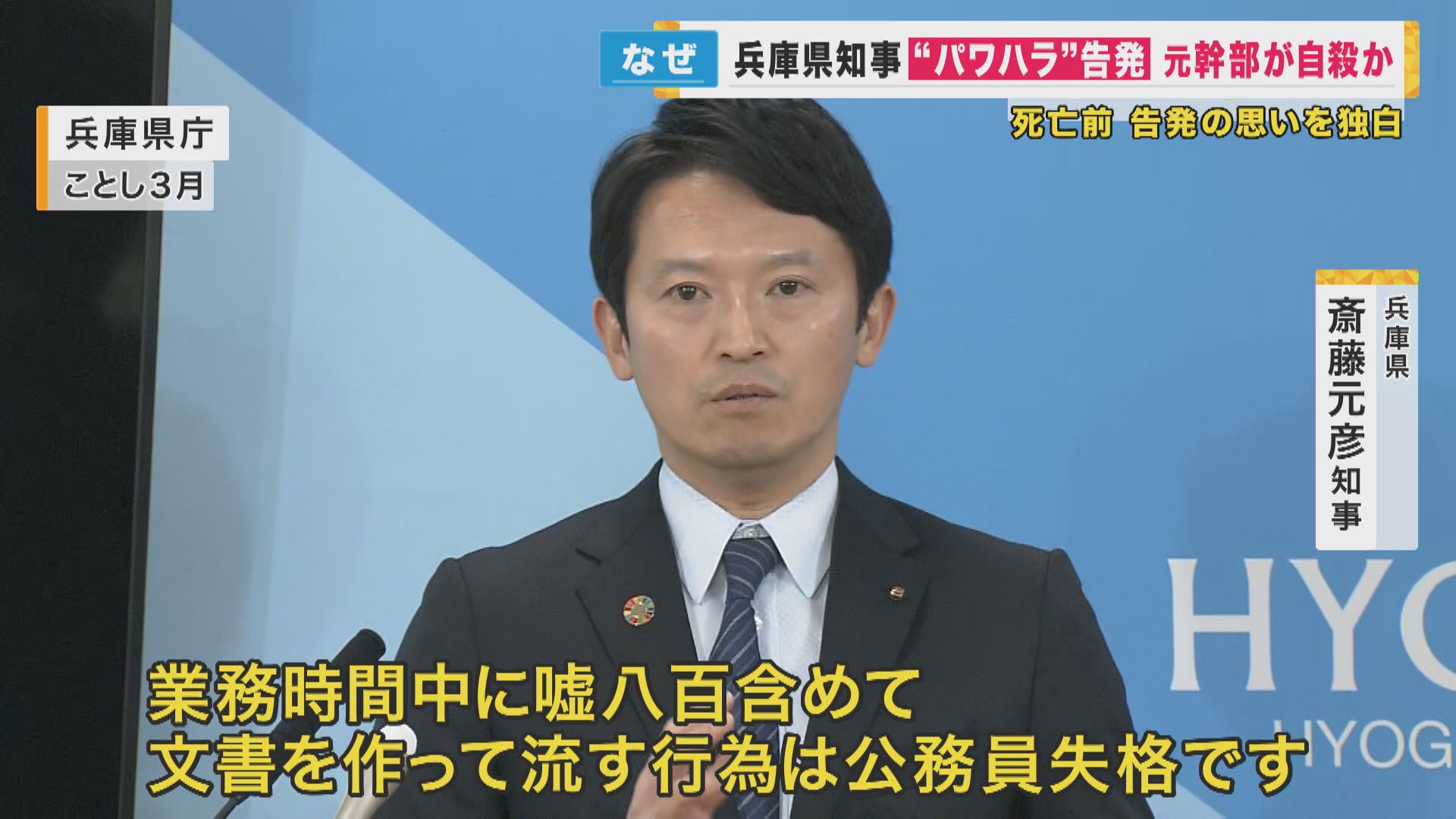 兵庫県の斎藤知事のパワハラ疑惑をめぐり、問題を告発した県の元幹部が亡くなったことが、関係者への取材で分かりました。自殺と見られています。