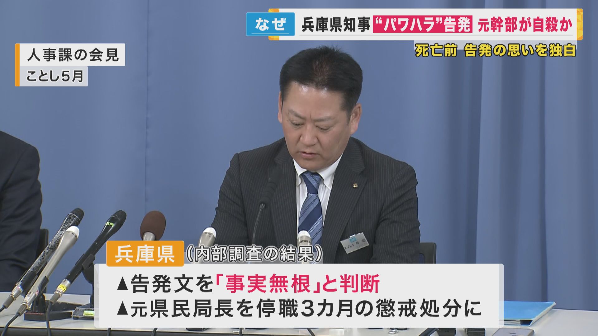 内部調査の結果、県は告発文を「事実無根」と判断し、元県民局長を停職3カ月の懲戒処分としました。