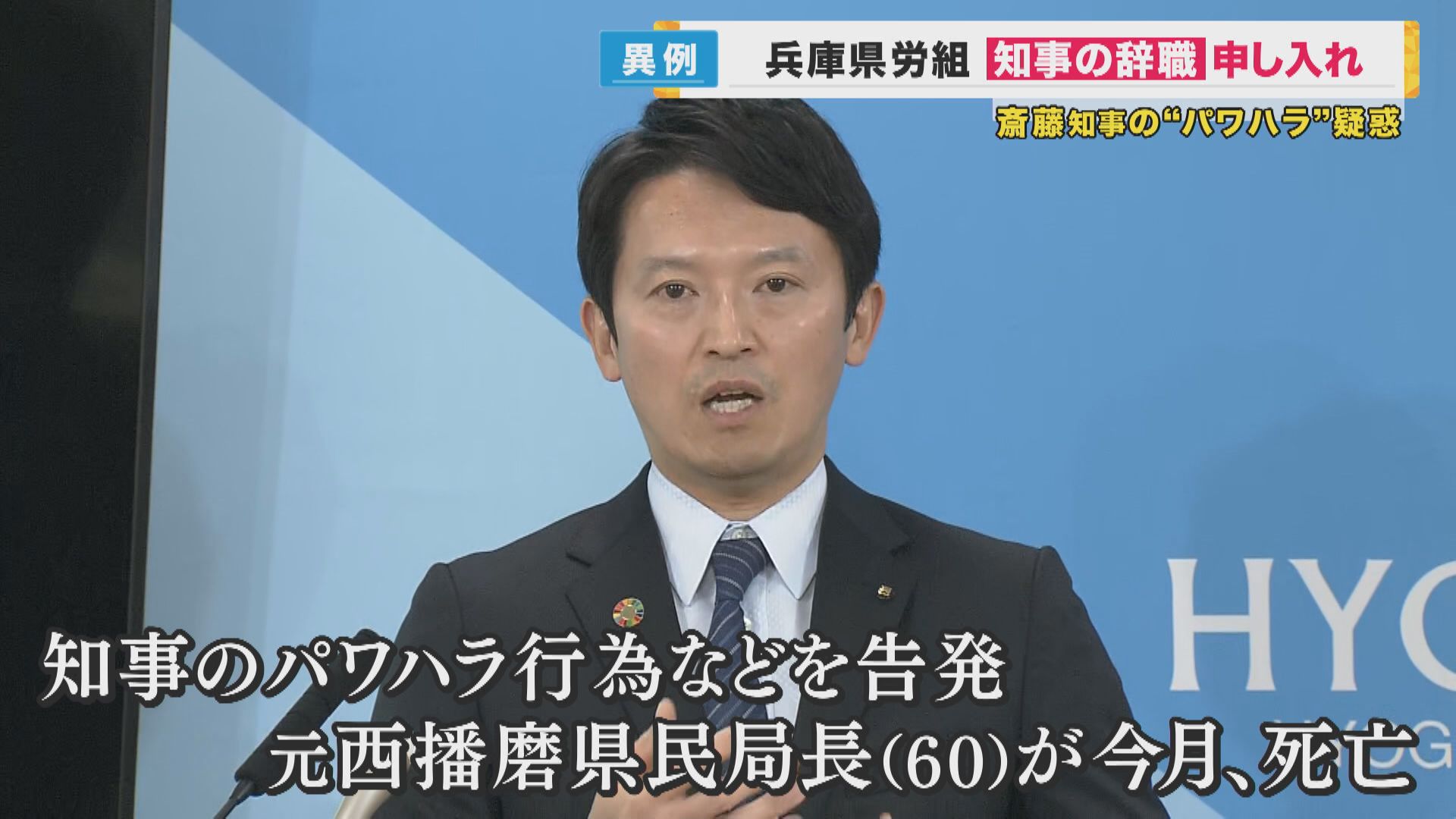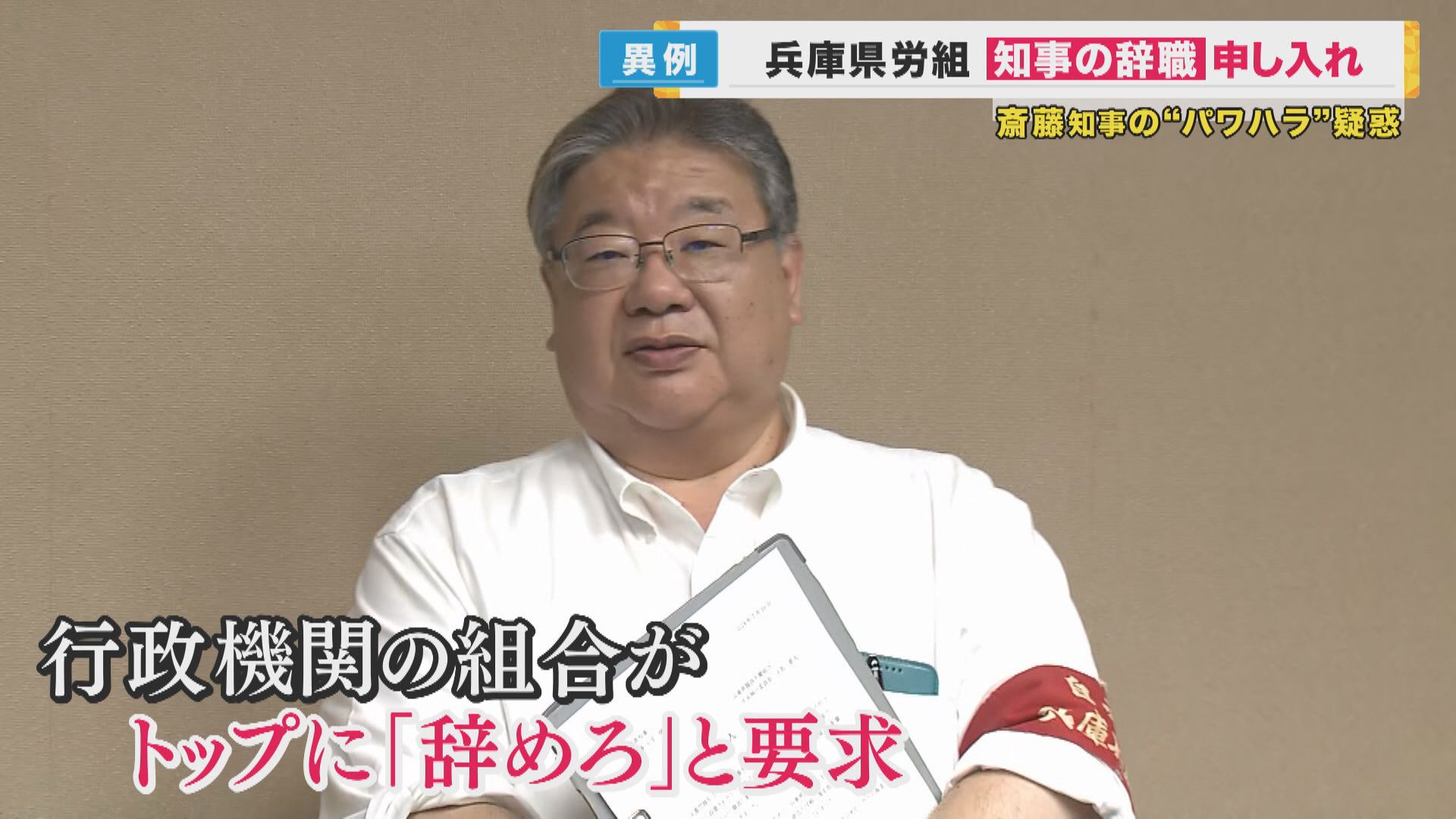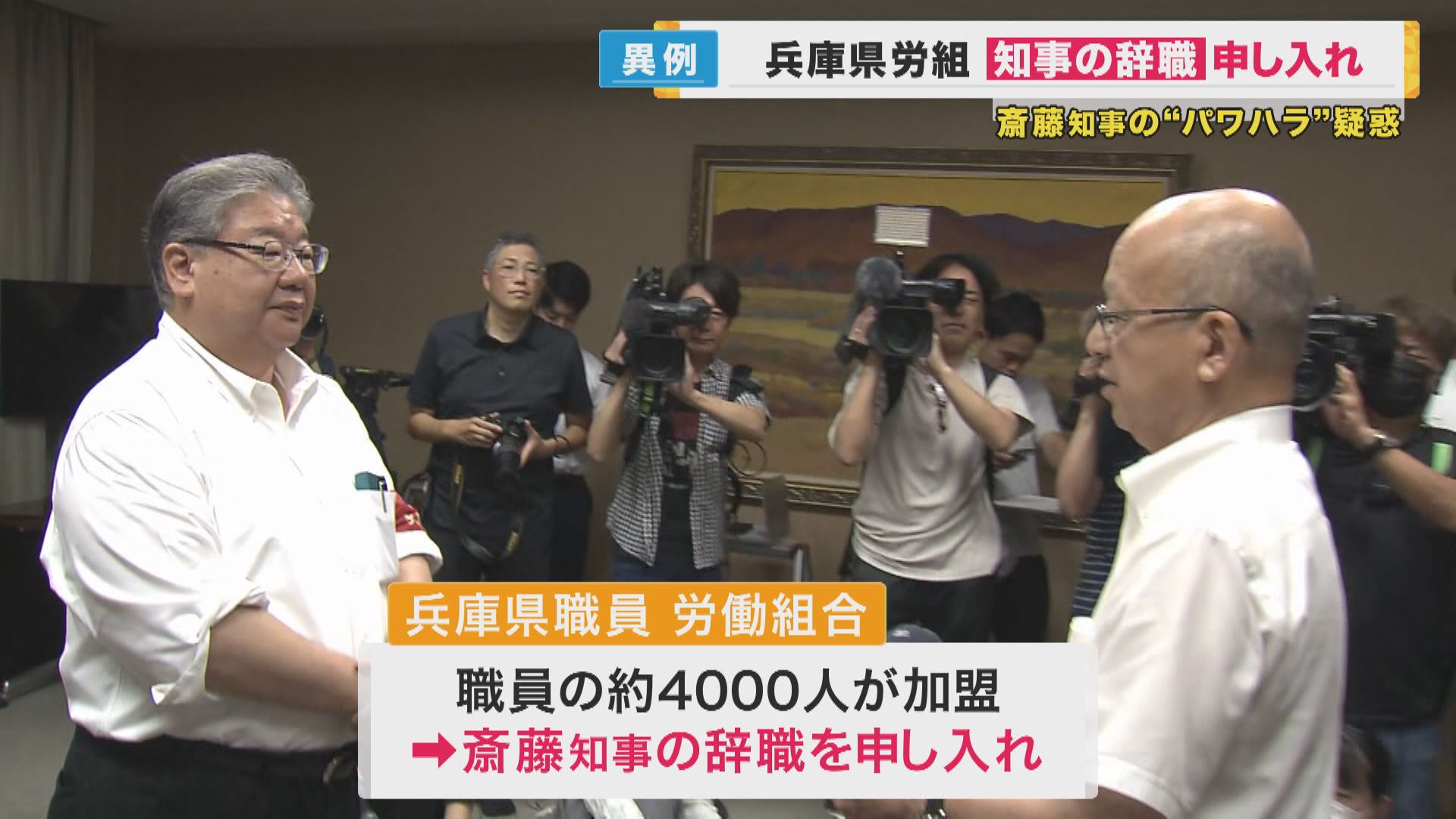 10日午前、兵庫県の職員およそ4000人が加盟する労働組合の代表が、斎藤知事の辞職を副知事に申し入れました。 行政機関の組合が、トップに「辞めろ」と要求する異例の事態となりました。